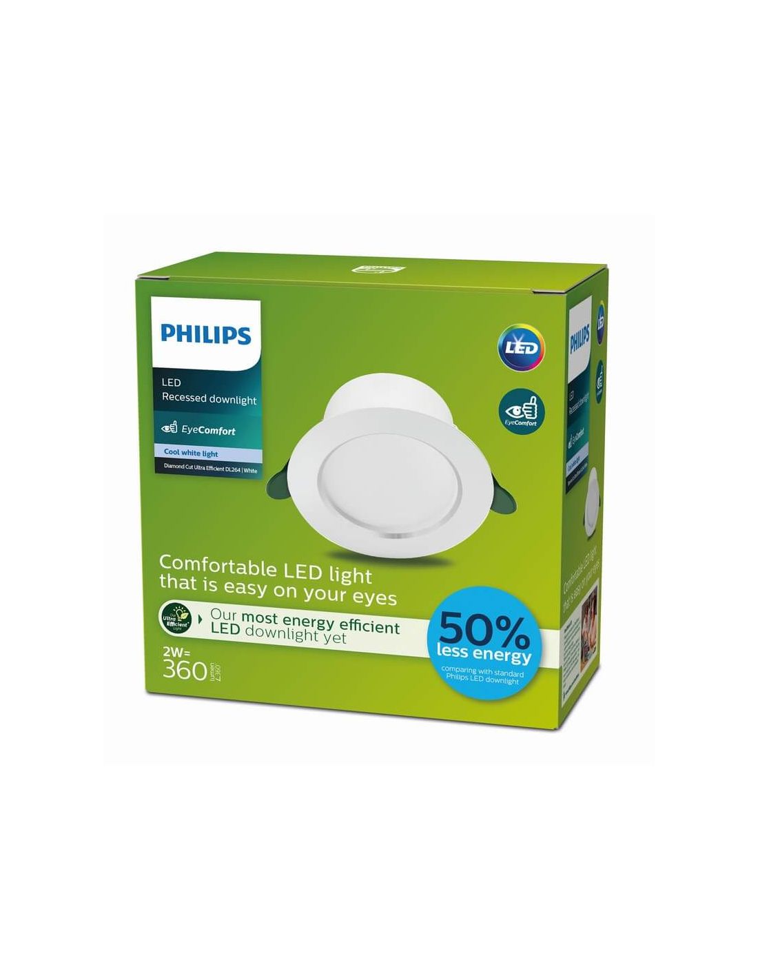 Mit einem Durchmesser von 95 mm und einer außergewöhnlichen Lichtausbeute ist dieses Downlight ideal für die Beleuchtung von Wohnzimmern, Schlafzimmern, Küchen oder Büros. Verwandeln Sie Ihr Zuhause mit effizienter, langlebiger und umweltfreundlicher Beleuchtung mit dem Downlight LED Einbau DIAMOND CUT Klasse A DL264 von Philips.