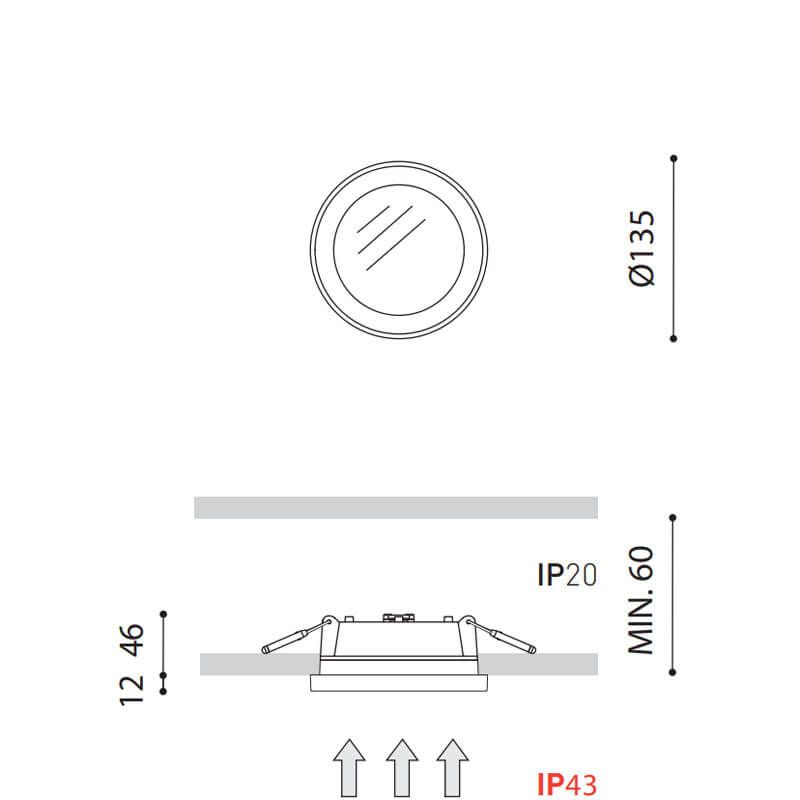 Seine kompakte Größe (122mm Einbaudurchmesser) macht es zur perfekten Leuchte für Räume, in denen eine allgemeine Beleuchtung gewünscht ist. Sein Lichtstrahlwinkel beträgt 87º, wodurch das Licht gleichmäßig im Raum verteilt wird, in dem es installiert wird.