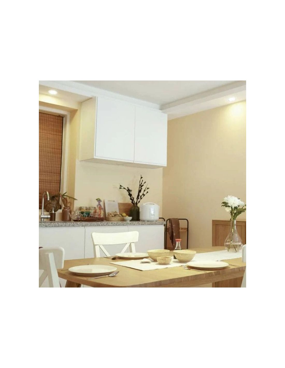 - Modernes Design: runde Form mit weißem Finish, das sich perfekt in jeden Wohnstil integriert.