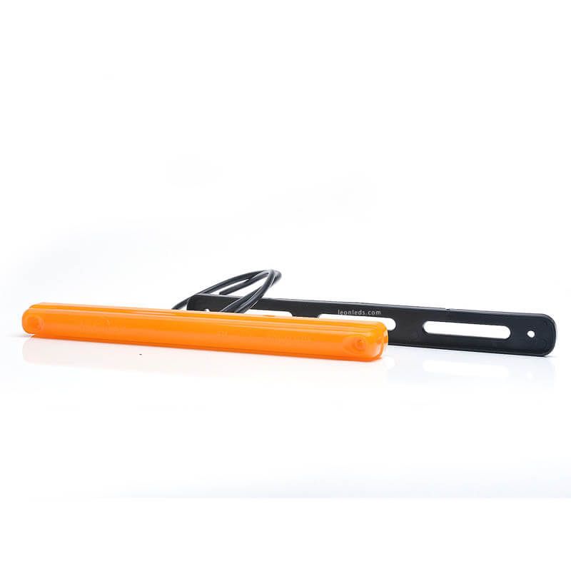 Dynamische LED-Signalleuchte mit Neon-Effekt und progressivem Lichteffekt, vollständig homologiert (2A) und geeignet für 12V und 24V. Amber-Abdeckung und LED-Neon-Effekt, die Lichtpunkte sind nicht sichtbar, verfügt über EMC- und 2A-Homologation und ist vollständig wasserdicht und tauchfähig.