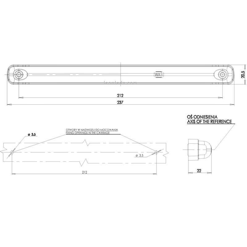 Diese Dynamische LED-Signalleuchte enthält 50 cm Kabel mit 2x0,75 mm², zur Installation kann sie mit 2 Schrauben an jedem Ende oder mit doppelseitigem Klebeband (NICHT ENTHALTEN) angebracht werden.