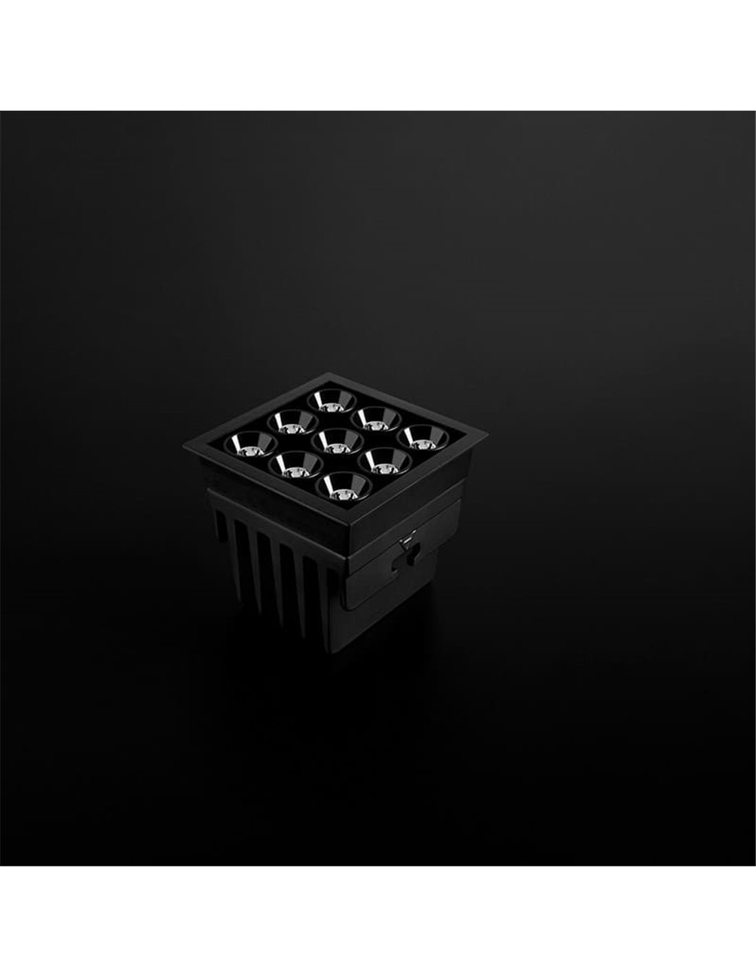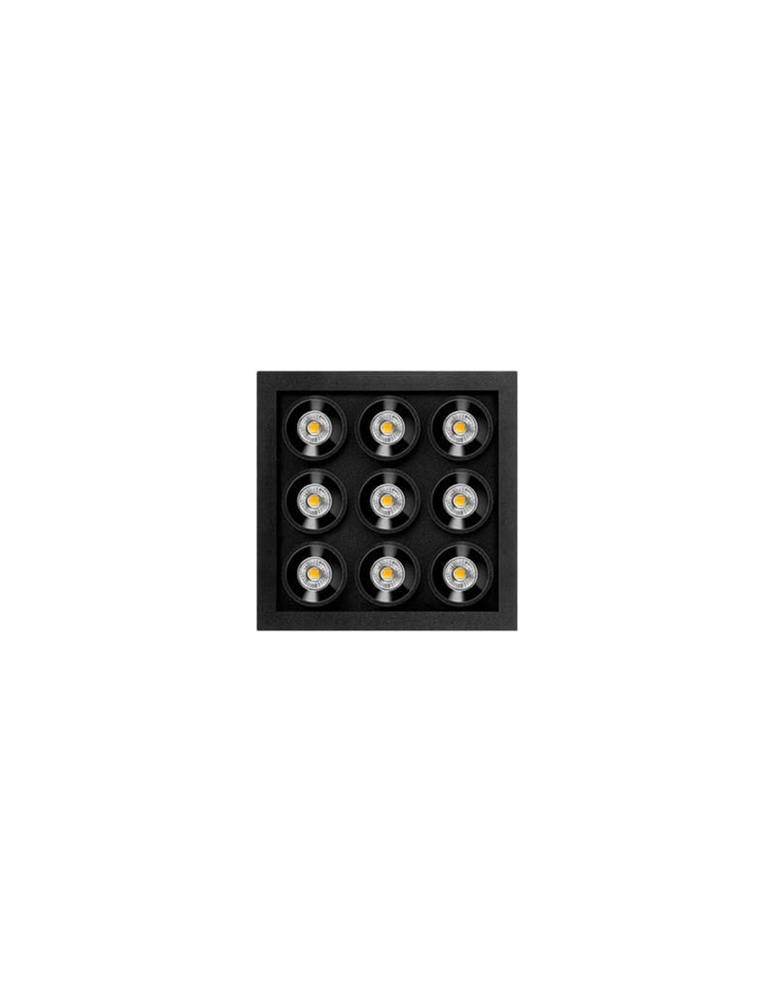 Das Einbau-LED-Downlight quadratisch BLACK FOSTER MICRO RECESSED 3x3 mit 6 Lichtern ist eine moderne und minimalistische Leuchte, die dafür geschaffen wurde, effiziente und elegante Beleuchtung in Innenräumen zu bieten. Mit einem quadratischen Format in Schwarz und der Anordnung der Lichter in einem 3x3 Muster passt sich dieses Downlight an verschiedene Innenräume wie Büros, Wohnzimmer, Küchen oder Handelsflächen an. Es ist in drei Farbtemperaturen erhältlich: 2700K (warmweiß), 3000K (neutral warmweiß) und 4000K (neutral), was Flexibilität entsprechend den Anforderungen des Raums ermöglicht.