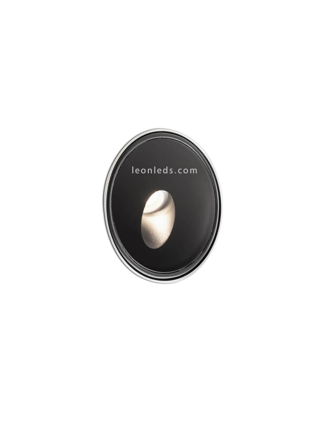 Runde Einbau-LED-Leuchte für den Außenbereich in schwarz, Leistung von 3W, eine warme Lichtfarbe von 3000K und eine Lichtintensität von 200Lm.