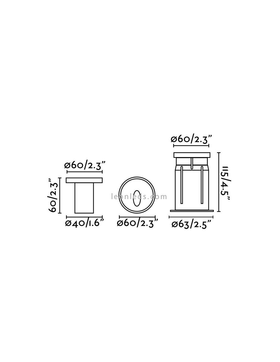 Die Einbauleuchte DANG hat einen runden Ausschnitt von 6CM, eine Außendimension mit einer Tiefe von 115CM und einer Breite von 6.3CM.