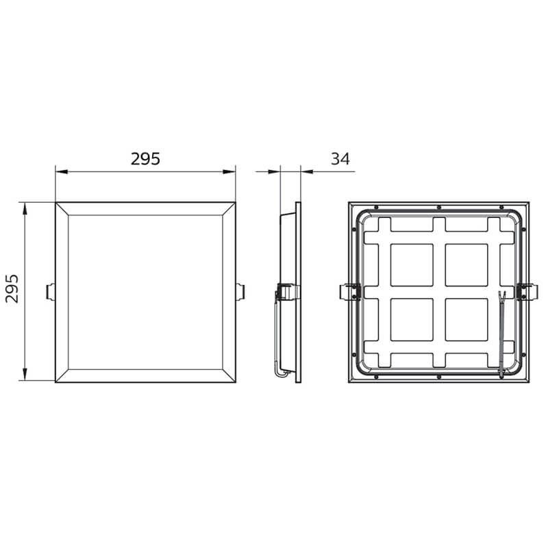 LED-Panel 30x30Cm für die flächenbündige Installation (295X295x3,4mm), mit einer Leistung von 15W und einem Abstrahlwinkel von 120º, seine Lichtstärke beträgt 1.200Lm. Perfekt für die Installation im Innenbereich IP20 und IK02 gegen Stöße, der Lichtton dieses Panels ist neutrales Licht 4000K.