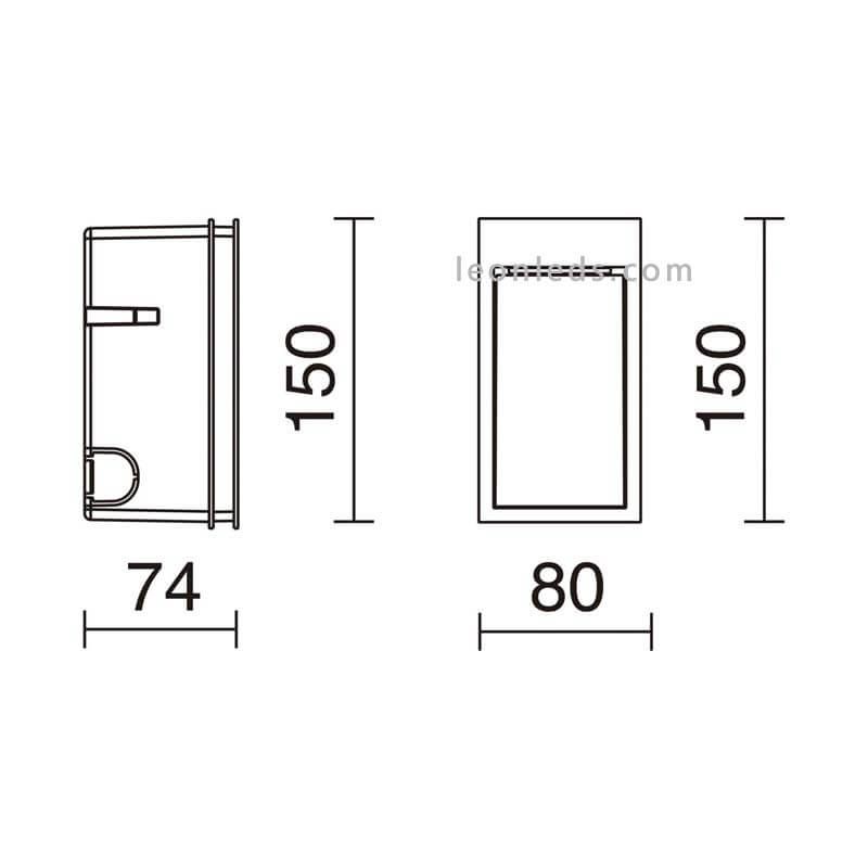 Er wird in der Außenwand eingelassen installiert, beinhaltet ein Einbaurahmen, Treiber und Anschluss für eine wasserdichte Verbindung. Die Einbaumaße betragen 15 cm Höhe, 8 cm Breite und 6,8 cm Tiefe, es ist kein zusätzliches Produkt erforderlich, damit es funktioniert.