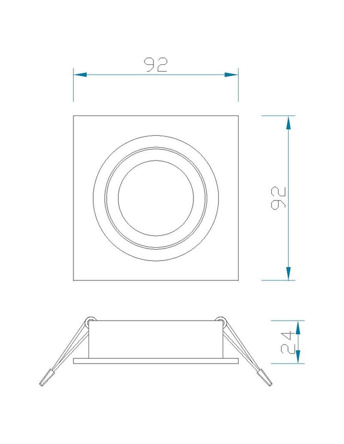 Führen Sie einen runden Schnitt Ø80 mm in die Decke ein, setzen Sie die Einbauleuchte ein und befestigen Sie sie mit den Halteklammern. Setzen Sie die GU10-Lampe (nicht enthalten) ein und schließen Sie sie an die Stromversorgung an. Es wird empfohlen, GU10-LED-Lampen wegen ihres geringen Verbrauchs und ihrer langen Lebensdauer zu verwenden. Nicht geeignet für feuchte Bereiche (IP20).