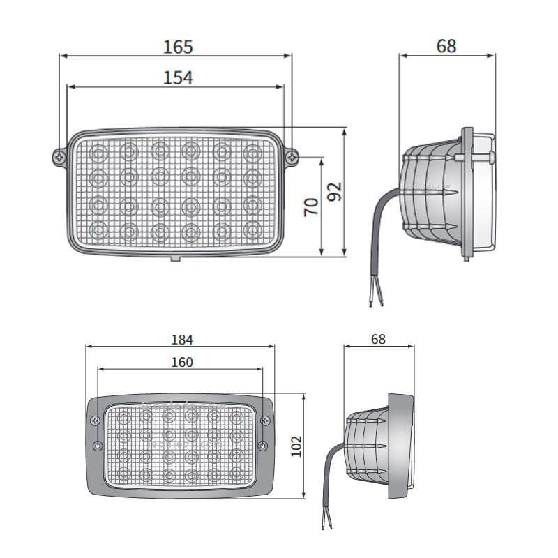 Die rechtwinkligen Arbeitsstrahler sind so konzipiert und hergestellt, dass sie strengen Laborprüfungen unterzogen wurden, um die besten Ergebnisse zu erzielen und die Bedürfnisse der Kunden zu erfüllen. Dieser einbaubare LED-Scheinwerfer mit 3.000Lm ist von hoher Qualität, mit einer hochwertigen Polycarbonatlens und einem EMC R10/CISPR 25 Klasse 5-Zertifikat, das garantiert, dass er keine Störungen im Radio oder Sender verursacht. Er ist schlagfest, feuchtigkeits- und vibrationsbeständig mit IP69K sowie vibrationsgetestet.