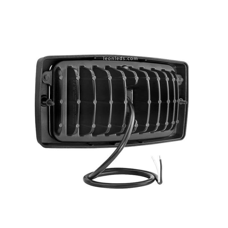 Rechteckiger einbaubarer LED-Scheinwerfer mit einer Leistung von 40W, einer Lichtintensität von 3.000Lm, Arbeitsoptik 63º x 45º, enthält ein halbes Meter Kabel für seine Installation und ist vollständig wasserdicht IP69K. Die Referenz des Hella-Birnenscheinwerfers zum Ersetzen ist diese 1GB006213101.