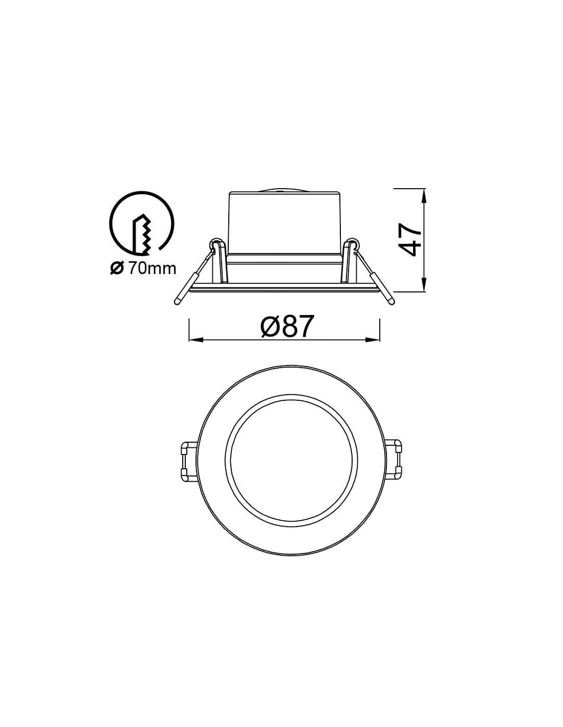 Ausschnittdurchmesser 10W: 7 cm und 4,7 cm.