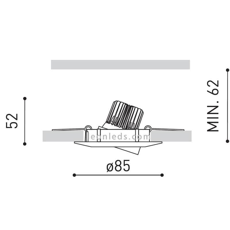 Dieser LED-Strahler wird bündig in einem Ausschnitt von 7,5Cm installiert, mit einer minimalen Installationshöhe von 6,2Cm von der Decke bis zur Innenwand. Er kann in jedem Raum des Hauses oder in jedem Geschäft installiert werden, da wir das Licht dank der Drehbarkeit auf den gewünschten Bereich ausrichten können.
