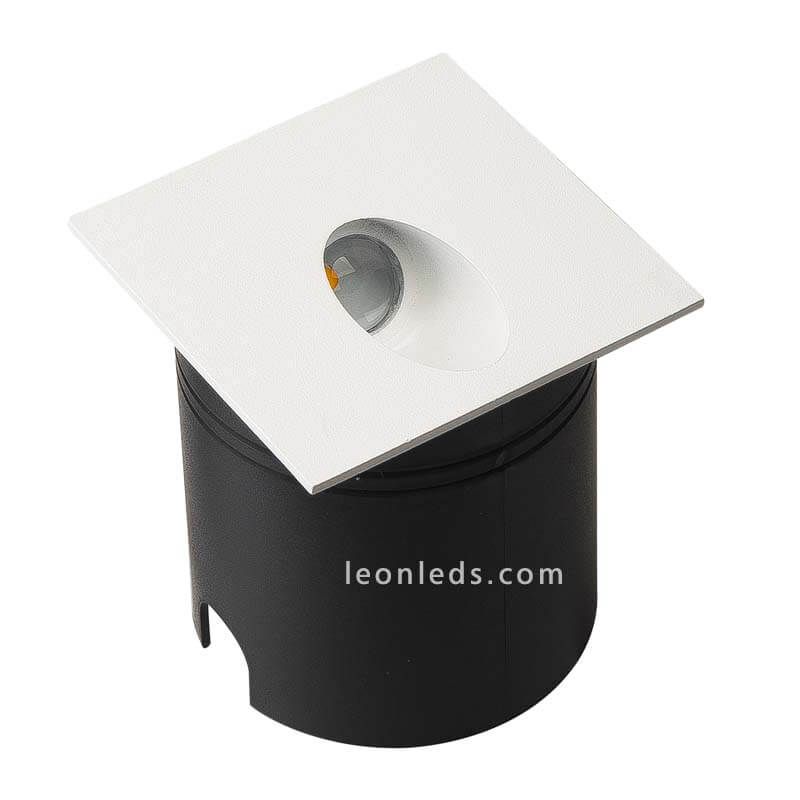 Quadratische LED-Einbauleuchte Aspen von Mantra mit integrierter LED-Technologie, einer Leistung von 3W, einem warmen Lichtton 3000K, einer Lichtintensität von 200Lm und einem Schutzgrad gegen Staub und Feuchtigkeit von IP65. Sie enthält den Treiber und das Gehäuse für den Einbau und eignet sich hervorragend zur Beleuchtung von Außenbereichen.