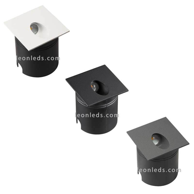 Dieser quadratische LED-Einbaustrahler weist integrierte LED-Technologie mit einer Leistung von 3W, einer Lichtintensität von 200Lm und einem warmen Lichtton von 3000K sowie einen Schutzgrad gegen Wasser und Staub von IP65 auf. Er enthält einen Treiber und ein Gehäuse zum Einbau. Seine Struktur ist aus Aluminium gefertigt und ist in 3 verschiedenen Farben erhältlich: Weiß, Schwarz und Dunkelgrau.