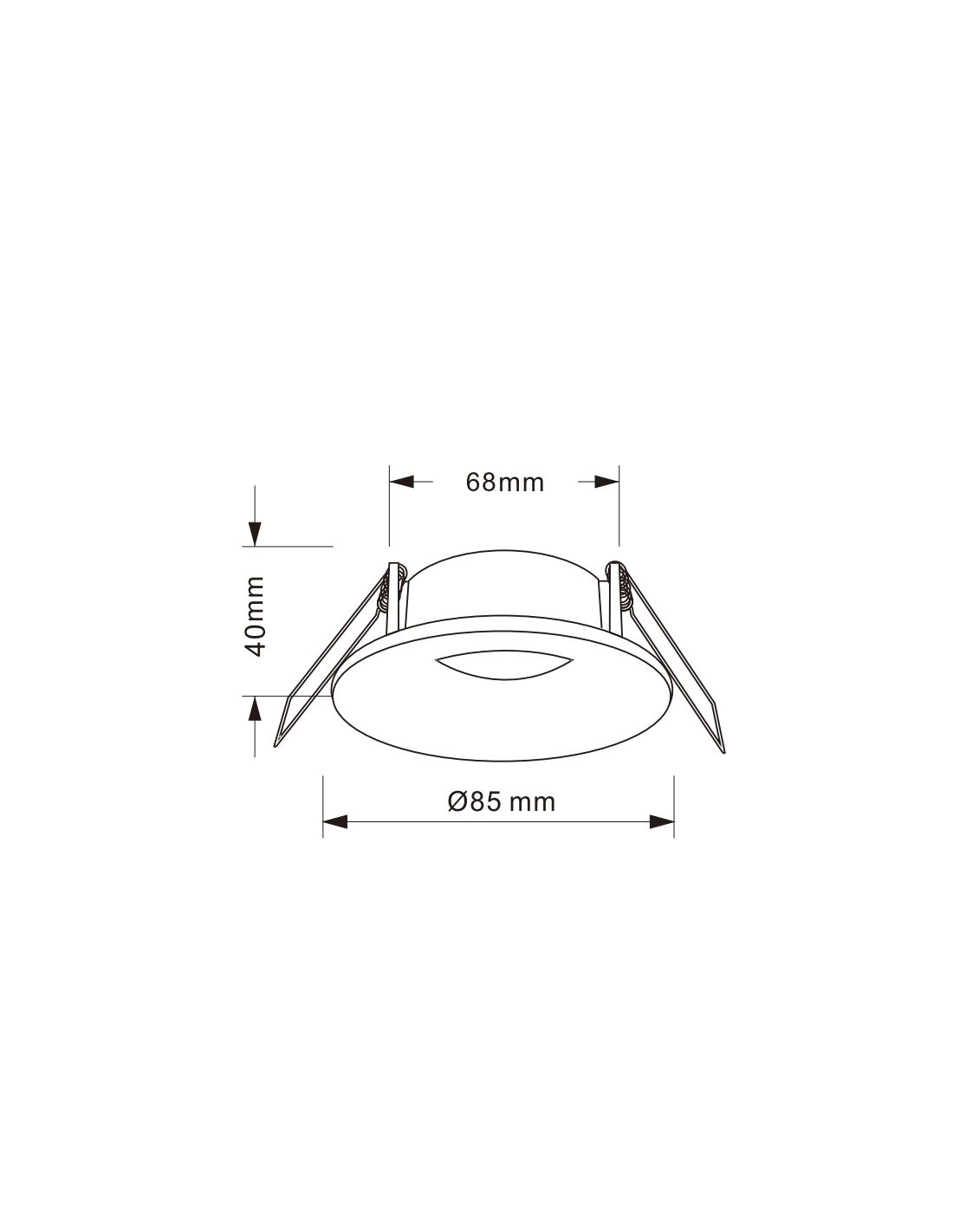 Runder Einbaustrahler Mantra 8654 TAVIRA rund in weißer oder schwarzer Ausführung, ideal für die Installation in Innenräumen, einschließlich Badezimmern und feuchten Bereichen, dank seiner IP54 Schutzart. Diese Einbaulampe ist kompatibel mit GU10 Lampen (nicht enthalten) bis max. 12W. Es bietet ein sauberes und modernes Design mit einem äußeren Durchmesser von 85 mm und einem Schnittdurchmesser von 68 mm, was eine ästhetische und funktionale Integration in Gipsplatten- oder Trockenbau-Decken gewährleistet. Inklusive 3 Jahre Garantie und hochwertigen Materialien mit matter weißer Oberfläche.