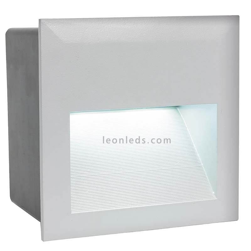 Eingebaute LED-Belichte Zimba quadratisch Silber IP65. Hergestellt aus Aluminium-Druckguss und in Silber ausgeführt. Beinhaltet integrierte LED-Technologie mit warmem Licht von 4000k und einer Leistung von 3,7W und 400Lm. Hat eine Schutzart IP65 gegen Wasser und externen Staub.