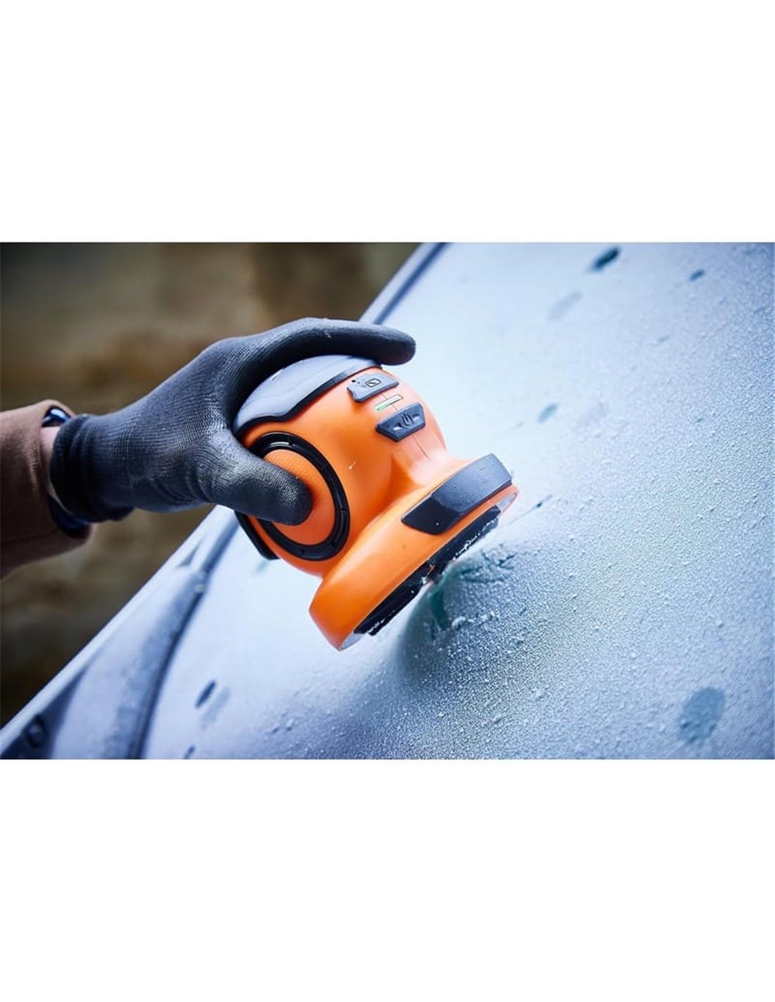 Elektrischer und wiederaufladbarer Eiskratzer USB-C mit rotierendem Rad, das Eis mit minimalem Aufwand entfernt, leichtes Design und Palm Switch zum Gebrauch sogar mit Handschuhen.