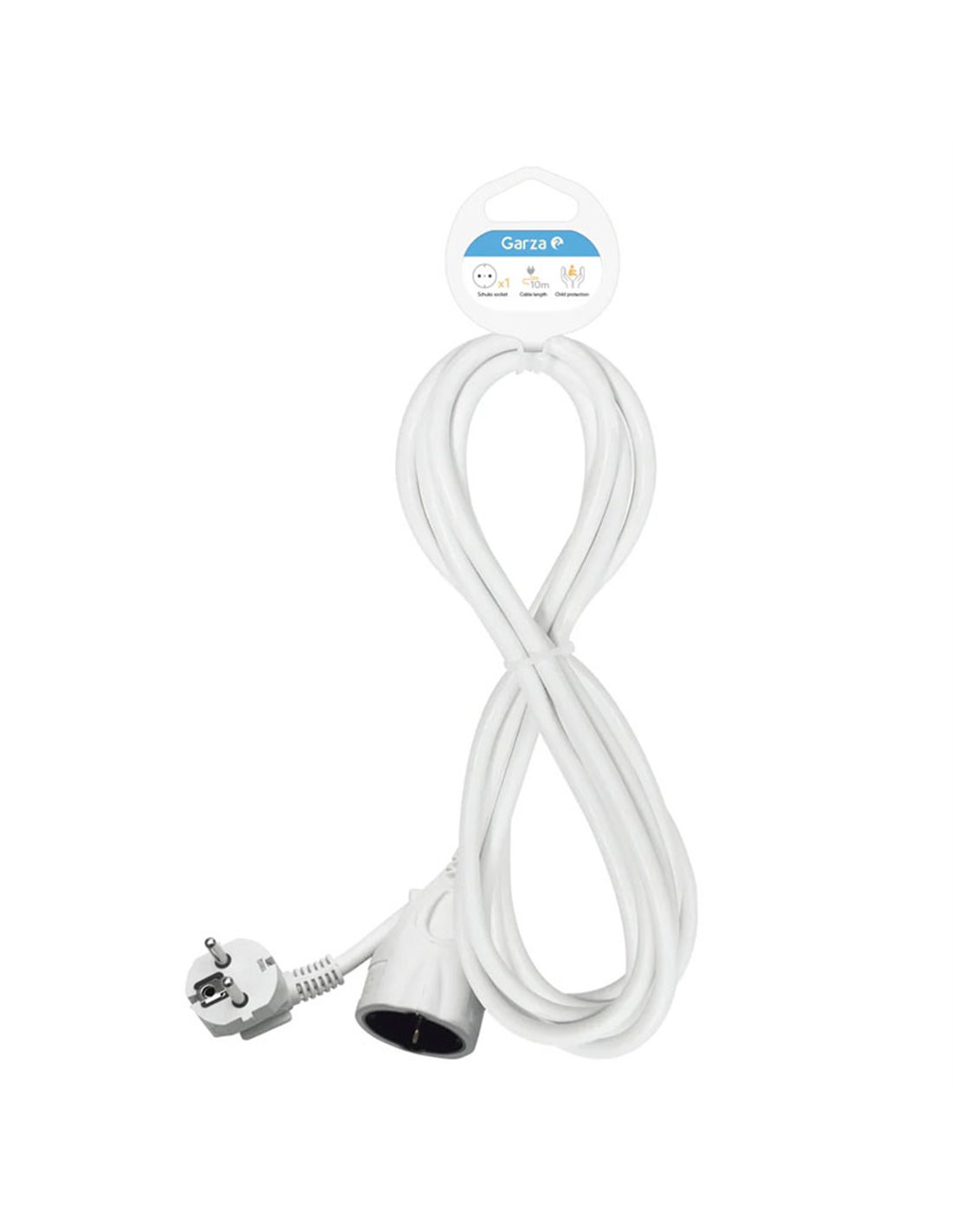 Dieses 10 Meter lange weiße Garza Verlängerungskabel bietet eine zuverlässige und sichere Erweiterung für jede Art der Innenanwendung. Es verfügt über eine 2-Pin Frontsteckdose und einen Schuko-Stecker mit Erdung, Kinderschutz und ein Kabel mit einem Querschnitt von 1,5 mm² (H05VV-F 3G). Es ist bereit, eine maximale Leistung von 3680 W / 16 A / 250 V zu unterstützen, was Leistung und Sicherheit bietet.