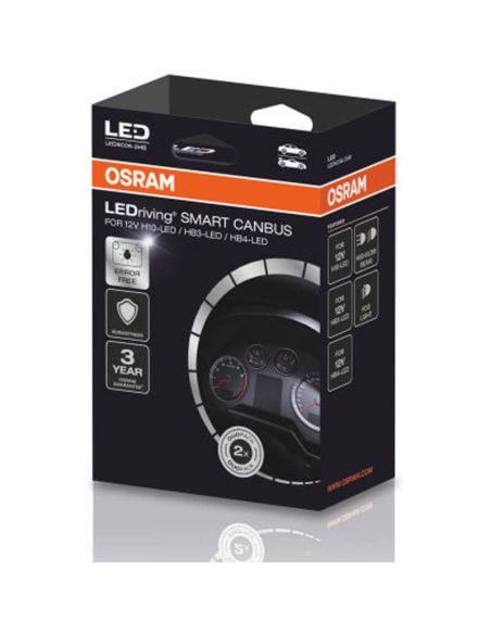 CanBus und Fehlerauslöser für spezifische Fahrzeuge der Marke Osram Smart Canbus Error Canceller mit der Referenz LEDSC06 für LED-Lampen H10, HB3 und HB4 von Osram, überprüfen Sie die Kompatibilität mit Ihrem Fahrzeug auf den Fotos oder auf der Website von Osram. Gültig für LED-Lampen für Fernscheinwerfer, Abblendlicht und Nebelscheinwerfer, inklusive Stecker für diese Lampen.