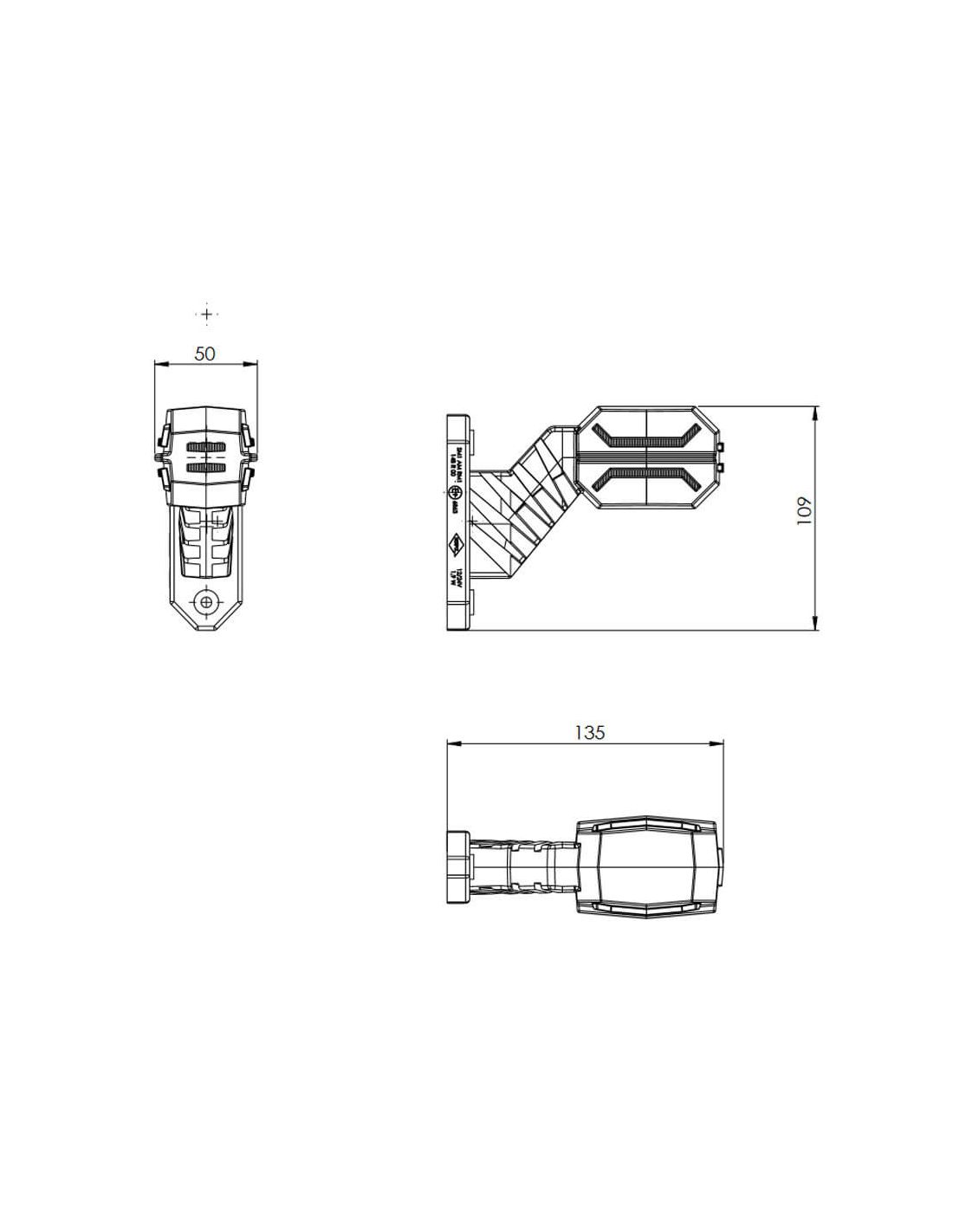 Dieses kurze LED-Warnlicht eignet sich zur Markierung in der Breite von Anhängern, es ragt 13,5 Cm hervor, und die Gesamthöhe beträgt 10,9Cm. Es gibt eine Hand, für die linke Seite sollten wir das linke Warnlicht installieren und für die rechte Seite das rechte Warnlicht.