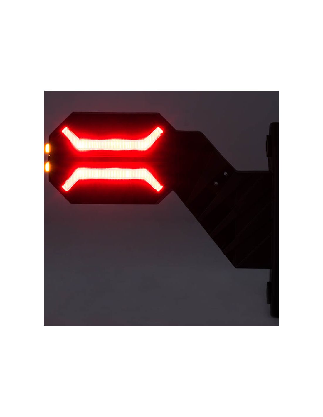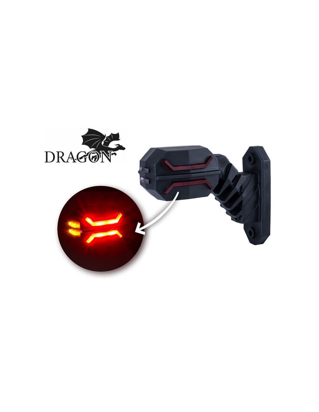 Gebogenes LED-Signal für Anhänger Dragon mit 3 Funktionen mit vorderem weißen Positionslicht, rotem Rücklicht und seitlichem orangefarbenem Licht, sowohl das vorderseitige als auch das rückseitige gibt das Hologramm von Horpol wieder, einschließlich eines halben Meters Kabel für die Installation. Homologationscodes SM1, AM und RM1 und R10 sind eingraviert. Es gibt eine Hand, wähle die richtige Seite.