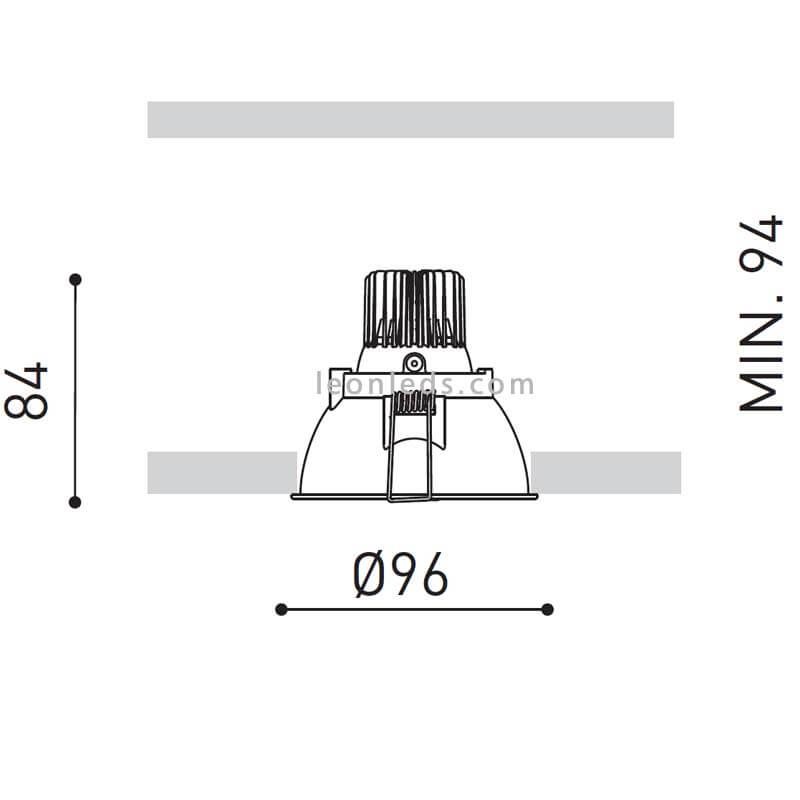 Dieser Einbau-LED-Spot wird bündig in einem runden 9 cm Durchmesser Ausschnitt installiert, mit einer minimalen Installationshöhe von 9,4 cm von der Decke bis zur Innenwand. Er kann in jedem Raum des Hauses oder in jedem Geschäftstres installiert werden.