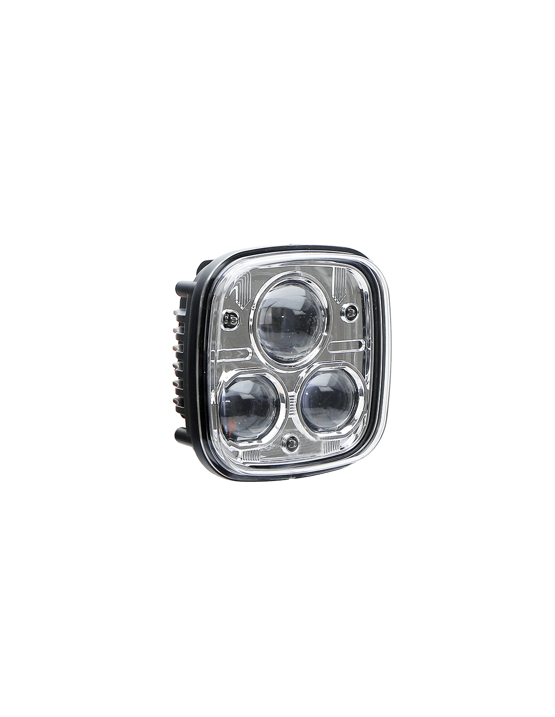 Front-LED-Scheinwerfer quadratisch, zugelassen, einbaubar mit einer Leistung von 30W/60W, geeignet für 12V und 24V und die Lichtoptik ist breit gefächert. Hergestellt aus Aluminium und der Lichtdiffusor ist aus hochwertigem Polycarbonat.