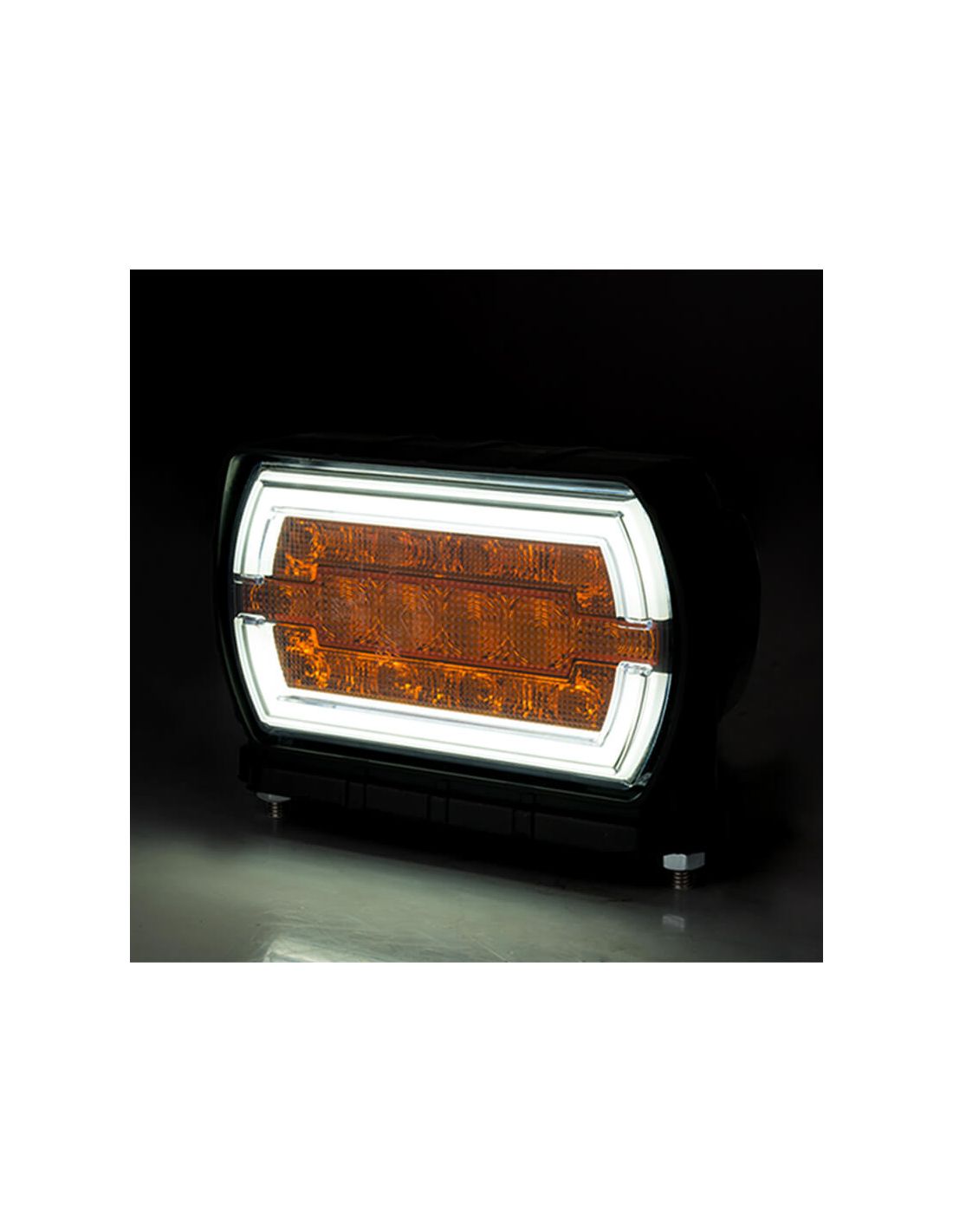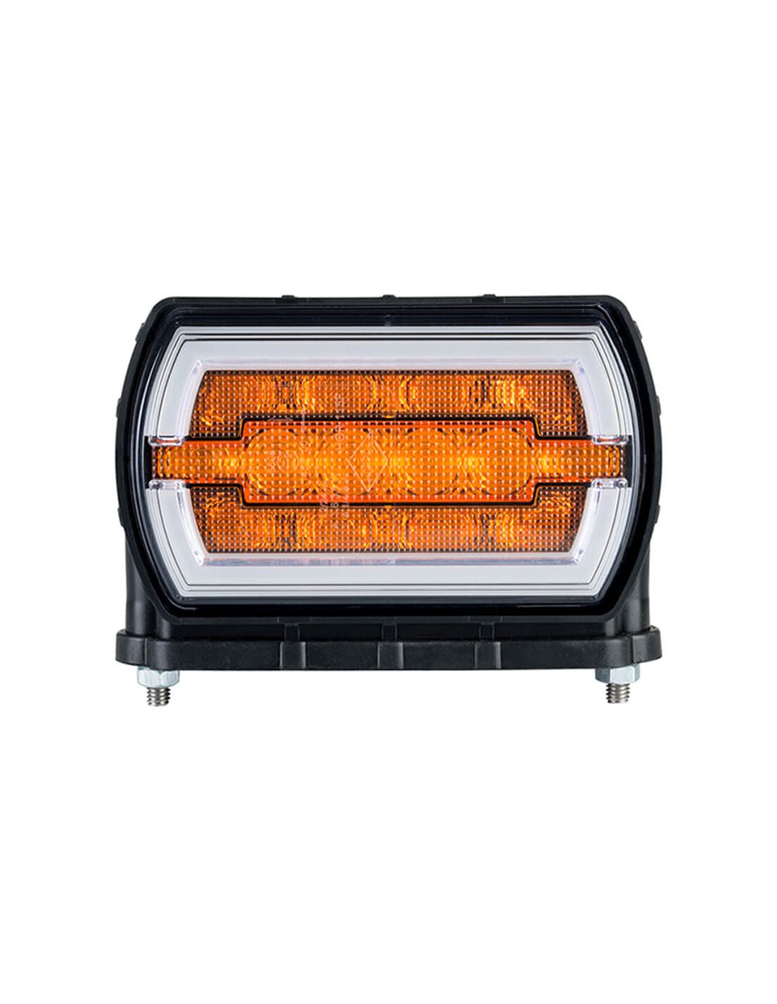 Genehmigter LED-Vorderscheinwerfer mit 2 Funktionen, Positionslicht und Blinker (A, 1), perfekt zur Installation an der Vorderseite von landwirtschaftlichen oder industriellen Fahrzeugen. Dieser rechteckige Pilot ist völlig wasserdicht und IP68 tauchfähig, enthält 1 Meter Kabel und ist geeignet für 12 Volt und für 24 Volt. Die Halterung ermöglicht die Installation dieses Scheinwerfers von unten.