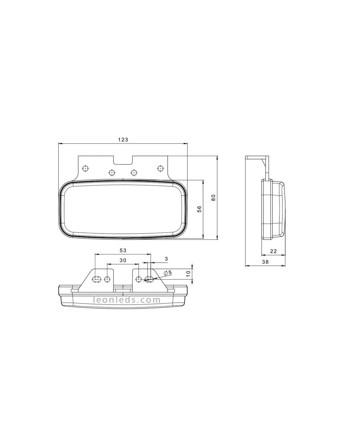 Das Modell enthält eine metallische Winkelstütze, die ideal für die Montage an der Seite des Chassis oder Kotflügels ist. Außerdem verfügt es über Drahtverkabelung mit drei Drähten (weiß, schwarz und gelb), die die Installation erleichtert: