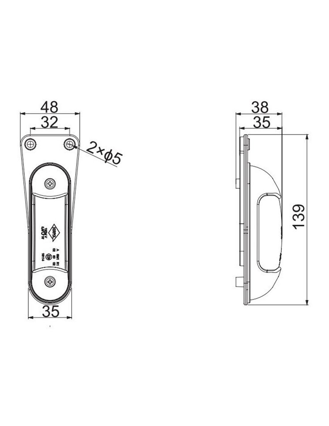 Abmessungen: ↕ 138,7 mm | ↔ 48,4 mm | Tiefe 37,6 mm.