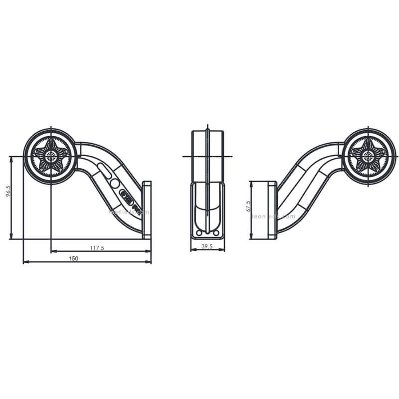 Dieses LED-Horn mit Abblendlicht ist perfekt für die Installation in Trailern, Plattformen und festen Trucks zur Galibokennzeichnung. Auf einem der Fotos kannst du die Maße des Horns und den Abstand zwischen den Schrauben sehen. Das Horn des Horns besteht aus flexiblem Gummi, hält Stößen und Vibrationen stand und bietet eine viel längere Lebensdauer als die von Glühbirnen.