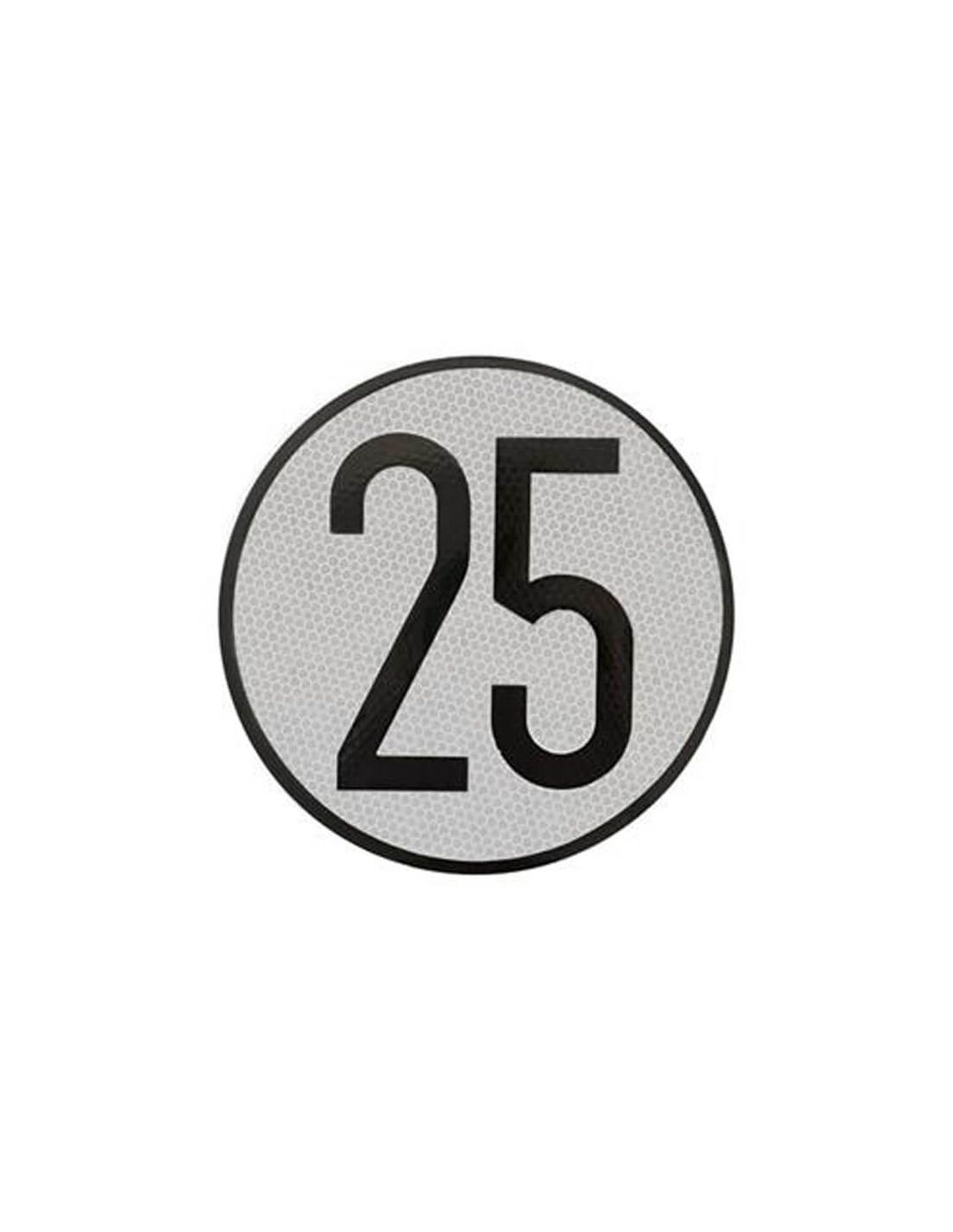 Geschwindigkeitsbegrenzungsschild 25 km/h (Signal V-4), hergestellt aus hochwertigem Aluminium. Ideal für landwirtschaftliche Fahrzeuge, Industriefahrzeuge und Spezialmaschinen.