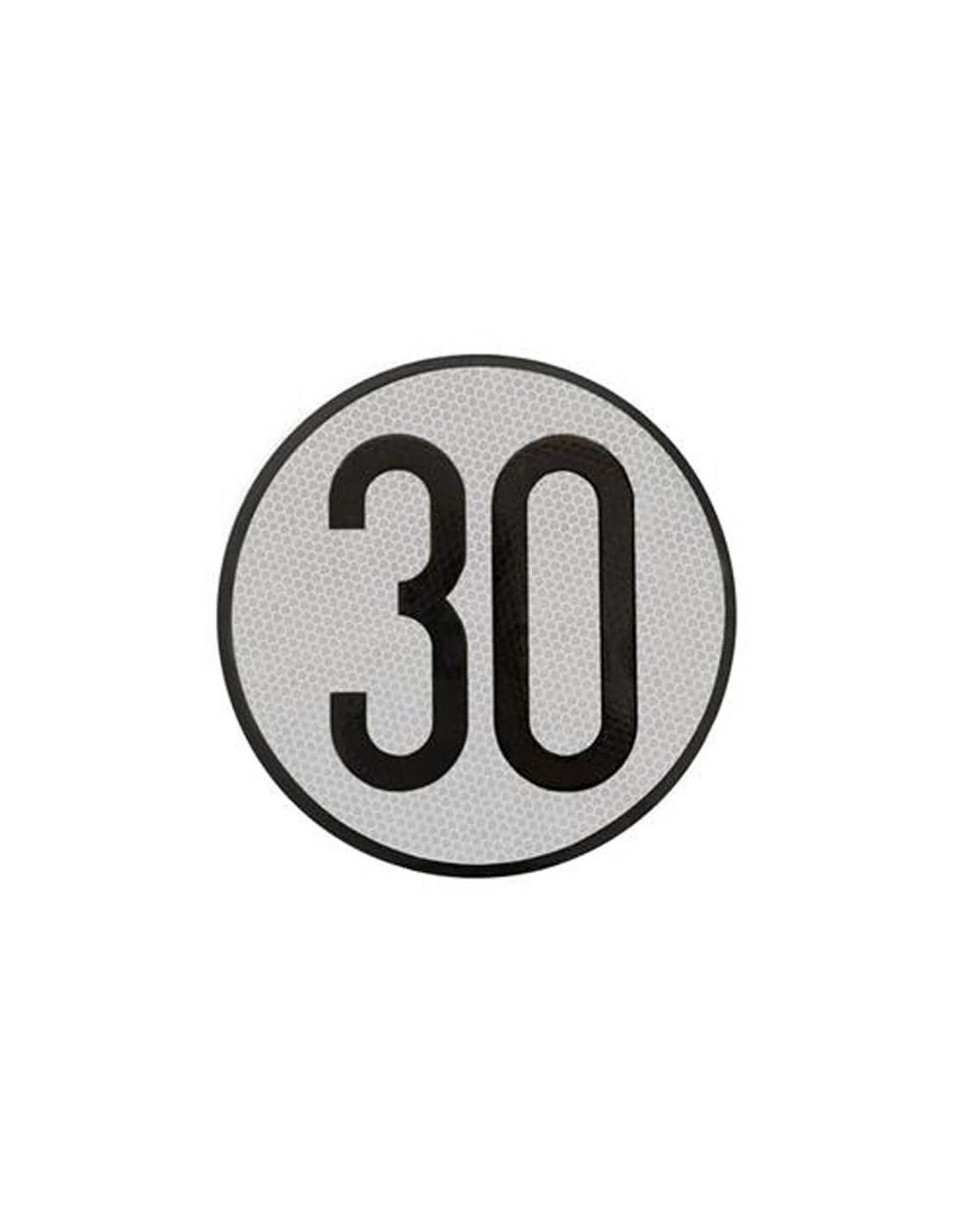 Geschwindigkeitsbegrenzungsschild 30 km/h (Signal V-4), hergestellt aus hochwertigem Aluminium. Ideal für landwirtschaftliche Fahrzeuge, Industriefahrzeuge und Spezialmaschinen.