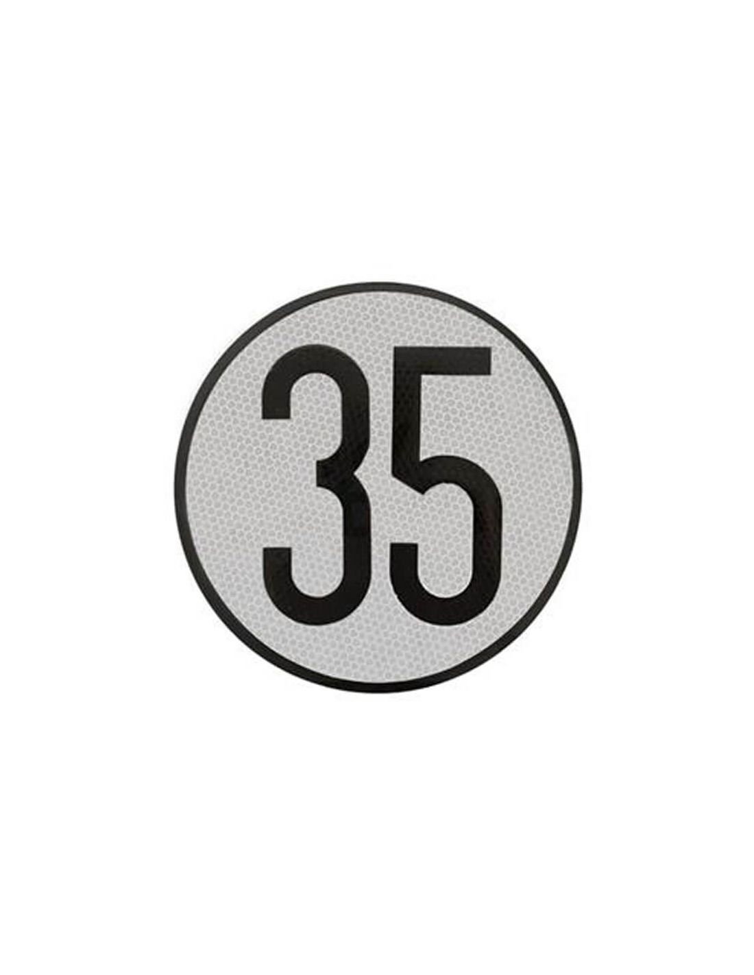 Geschwindigkeitsbegrenzungsschild 35 km/h (Signal V-4), hergestellt aus hochwertigem Aluminium. Ideal für landwirtschaftliche Fahrzeuge, Industriefahrzeuge und Spezialmaschinen.
