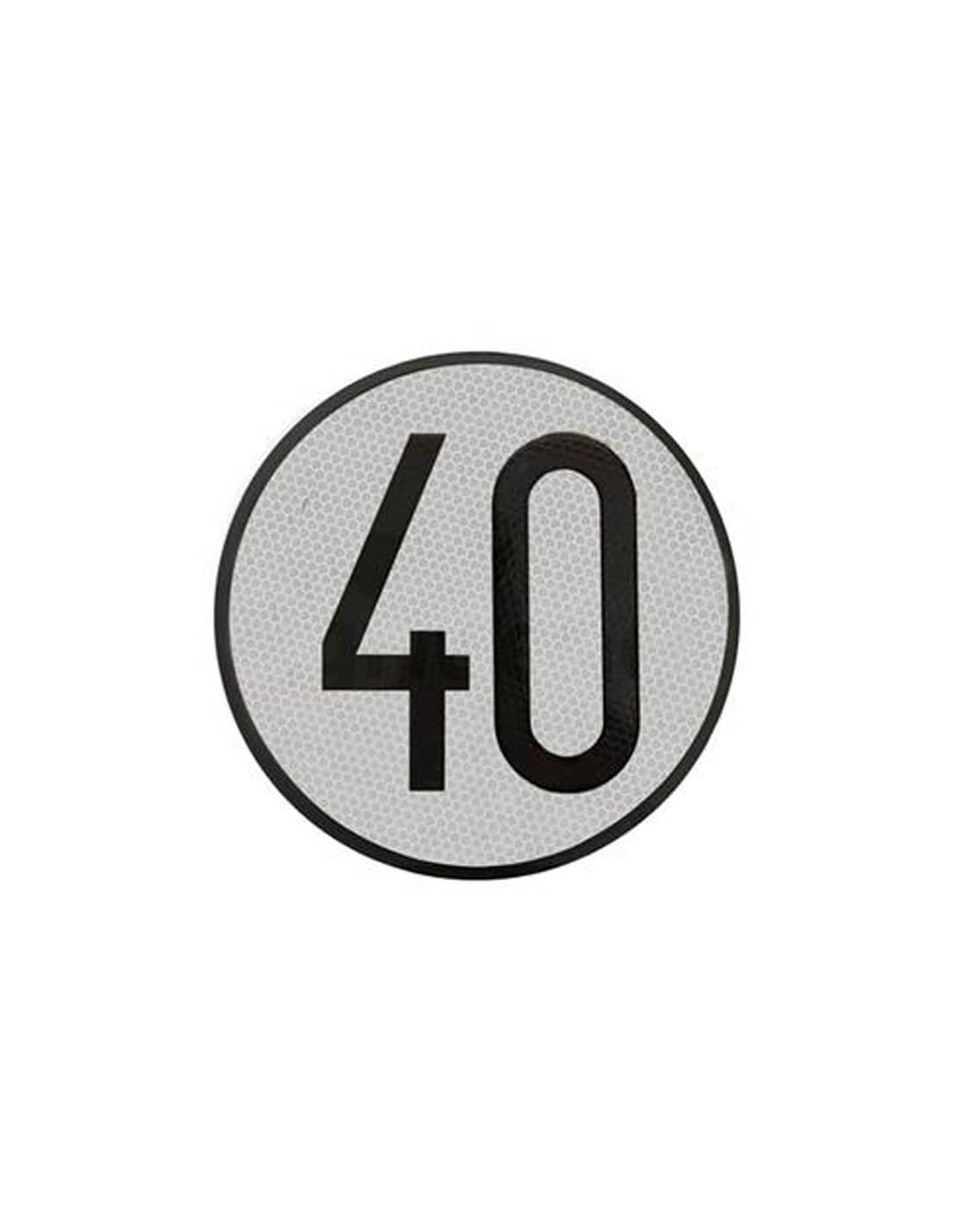Geschwindigkeitsbegrenzungsschild 40 km/h (Schild V-4) hergestellt aus hochfestem Aluminium. Ideal für landwirtschaftliche, industrielle Fahrzeuge und spezielle Maschinen.
