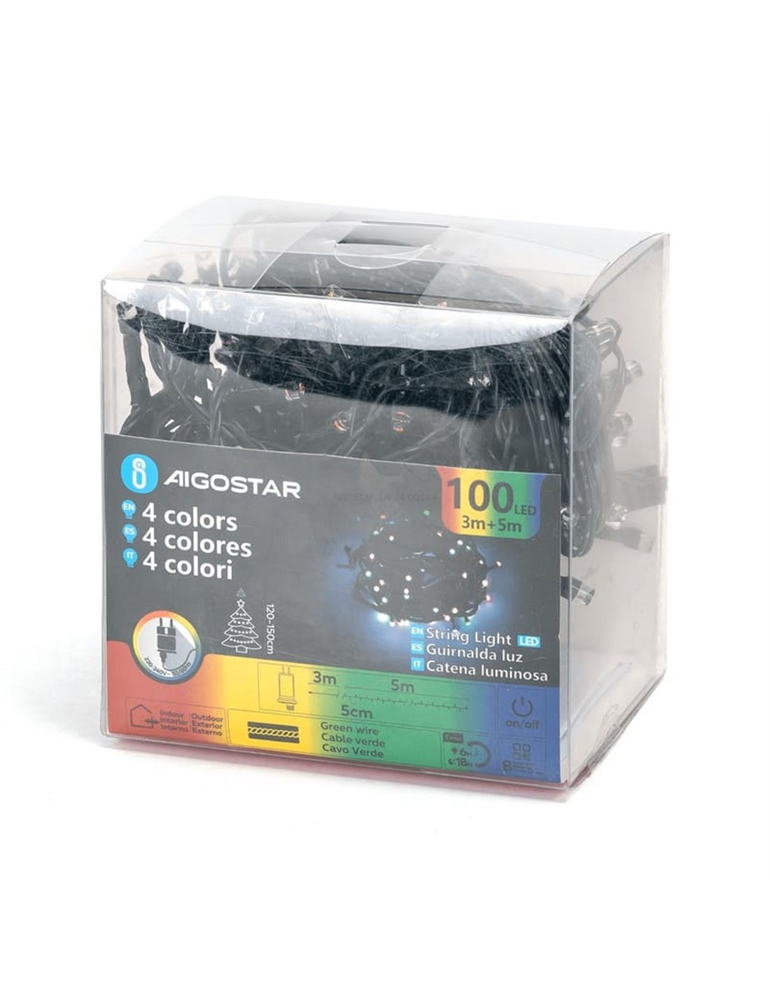 Wenn Sie eine LED-Girlande mit Niederspannung von 5 m und 100 RGBY-LEDs mit IP44 suchen, um Balkone, kleine Bäume oder Schaufenster zu dekorieren, ist dieses Modell von Aigostar eine sichere, effiziente und sehr dekorative Option. Fügen Sie es Ihrem Warenkorb auf LeonLeds.com hinzu und vervollständigen Sie Ihre Festtagsdekorationen mit einem kompakten mehrfarbigen Akzent.