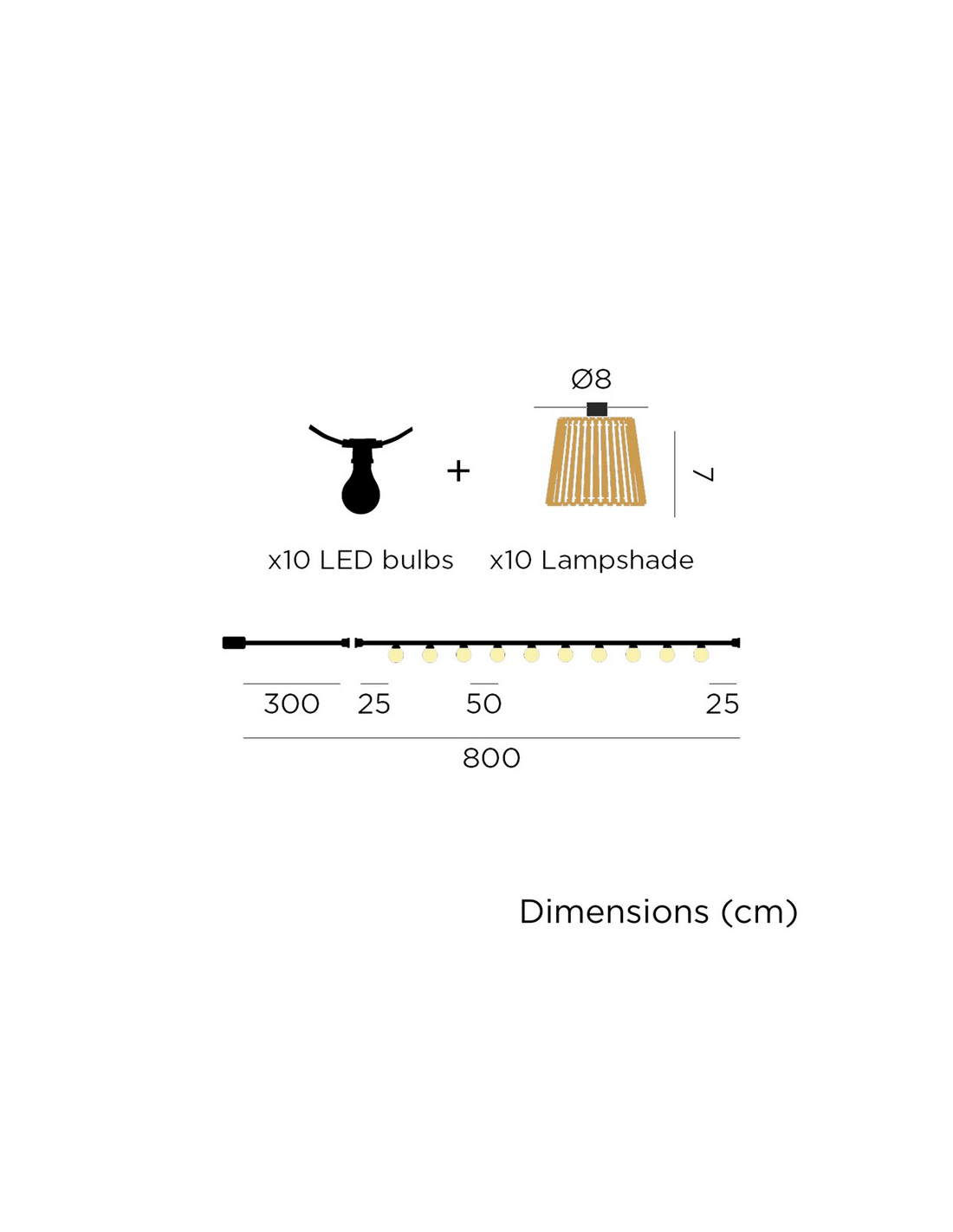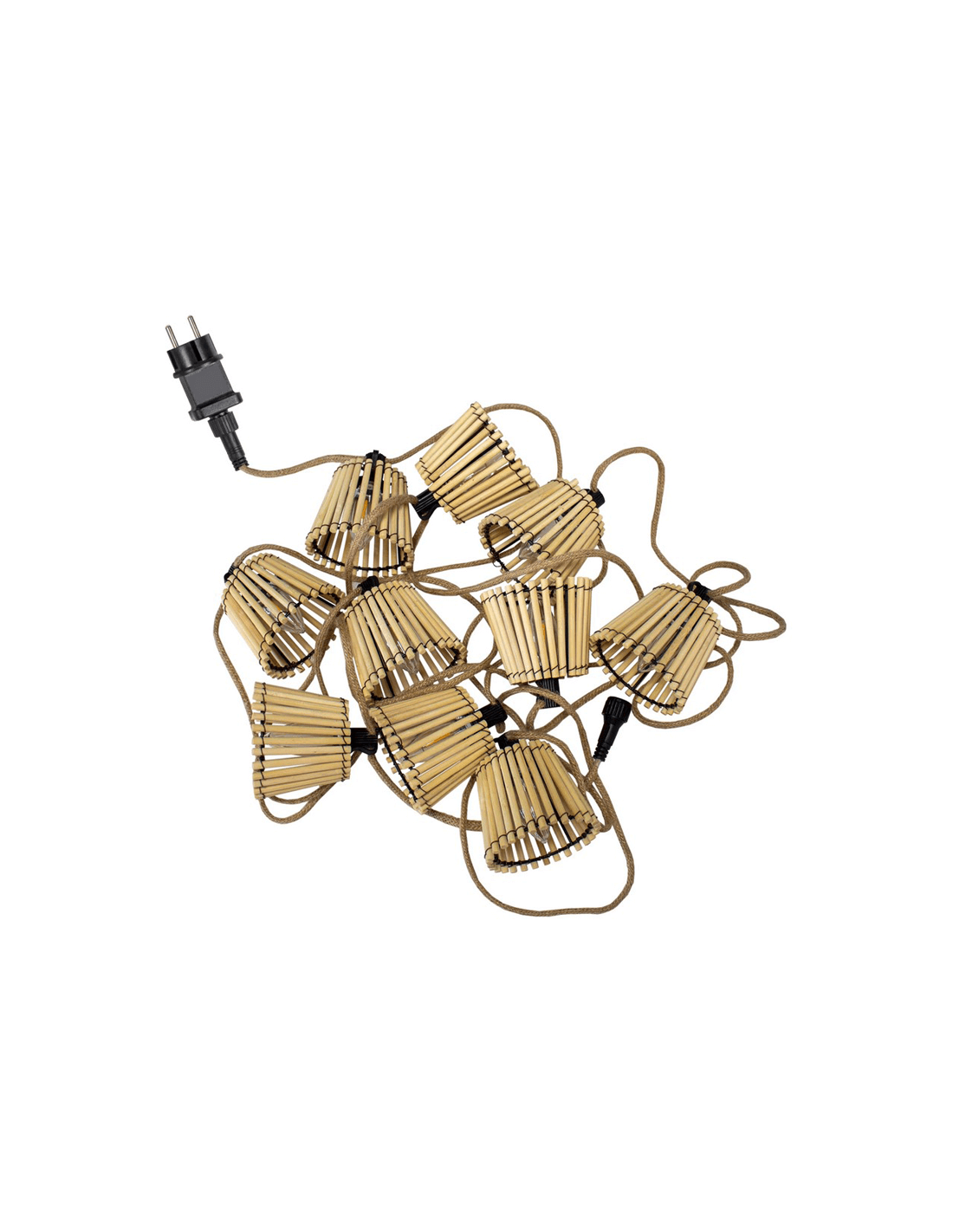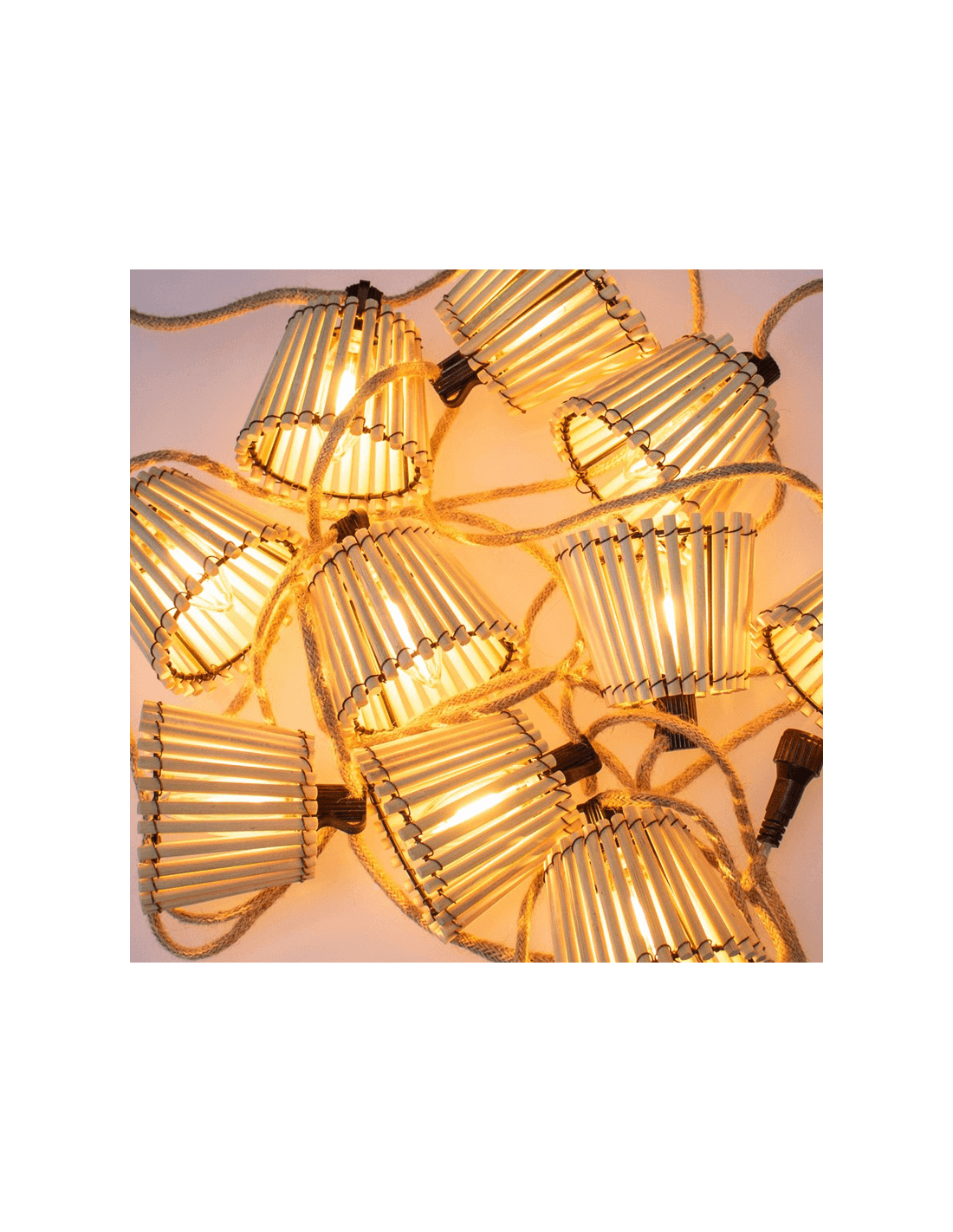 Wir präsentieren zwei Arten von Girlanden: die, die mit Steckdosenkabel arbeitet und es ermöglicht, die Beleuchtung sowohl im Außen- als auch im Innenbereich mit einem Lichtstrom von 5 Lumen und einem Lichtton von 1800k (Flammeffekt) für jede der enthaltenen 10 Glühbirnen zu genießen.