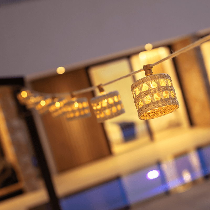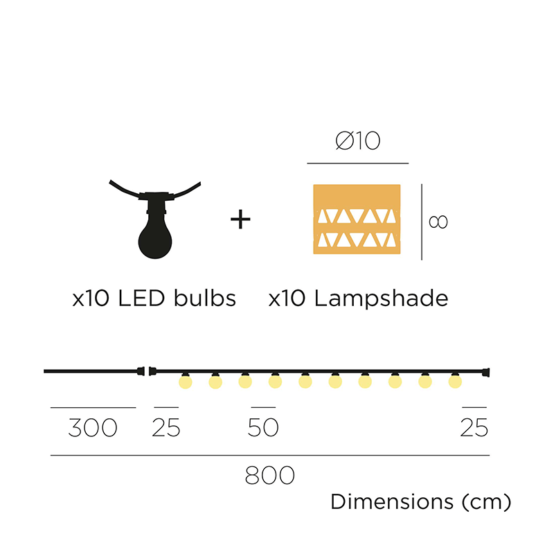 Es handelt sich um ein dekorationselement, das in der Lage ist, die Atmosphäre automatisch zu verwandeln, sie einladender zu gestalten und einen einzigartigen Stil zu verleihen. Die Glühbirnen sind mit kleinen, handgefertigten Tulpen aus natürlichen Fasern bedeckt. Mit der Verpackung werden 10 Glühbirnen mit E12-Sockel als Ersatz mitgeliefert, die eine warme Beleuchtung bieten und ein beeindruckendes Ergebnis liefern.