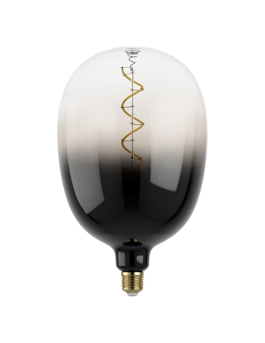 Große LED-Birne T180 mit grau und schwarzem Verlauf. Warmlicht 2700K, 4W, dimmbar und dekorativ. Ideal als eigenständiges Stück. E27-Fassung.