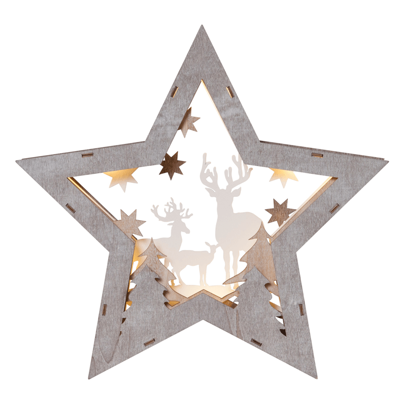 Tischstern mit Licht aus weißem Papier Karo mit Holzfuß