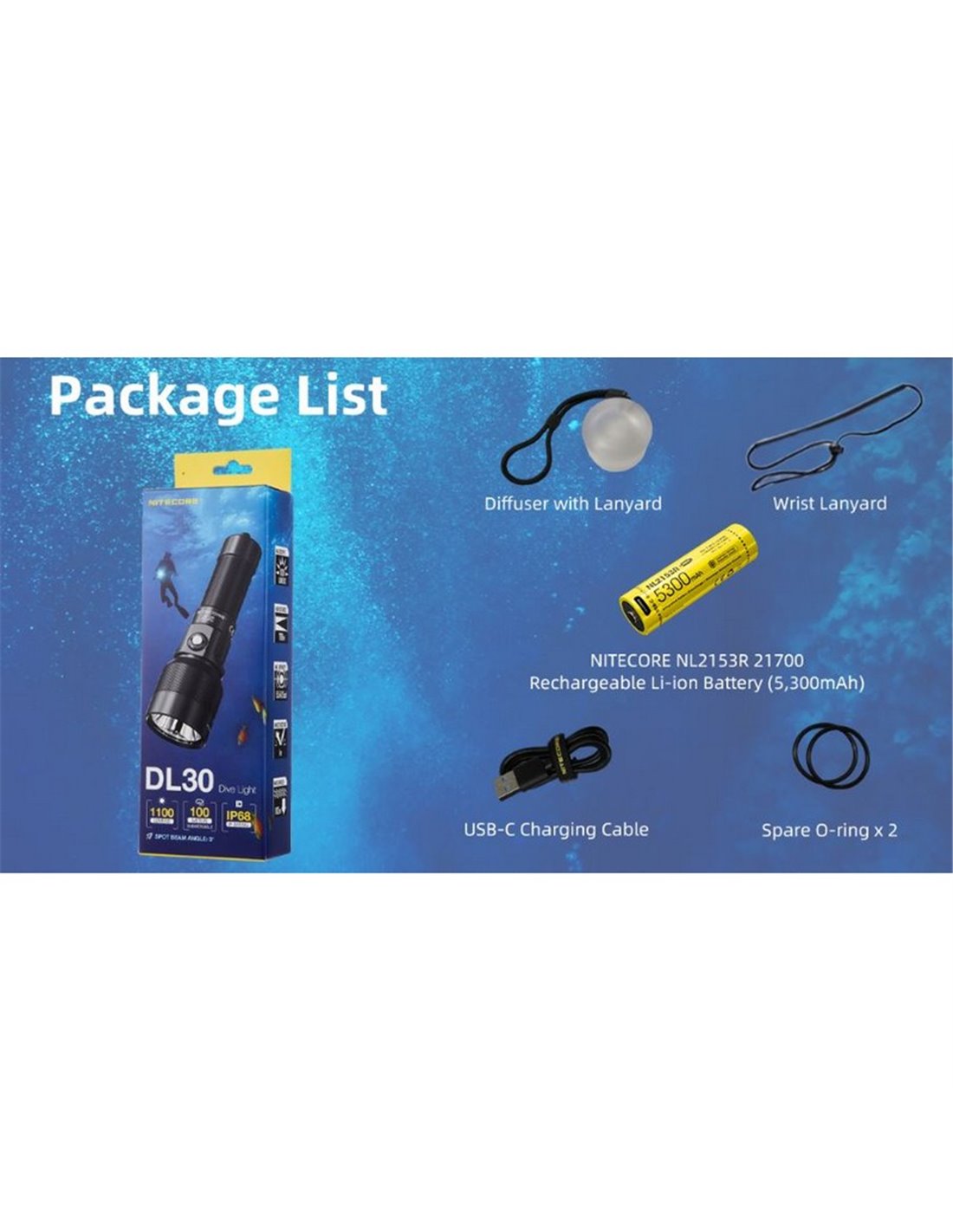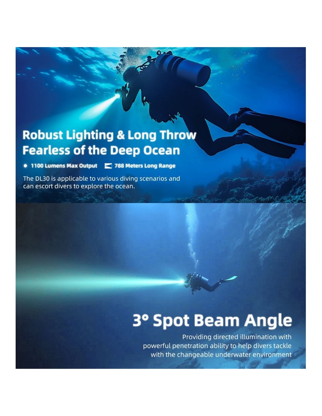 Die DL30 ist eine vielseitige und leistungsstarke Lampe, die speziell für das Tauchen und extrem Bedingungen entwickelt wurde. Ihre robuste Bauweise und die fortschrittliche Beleuchtungsfähigkeit machen sie zu einem unverzichtbaren Werkzeug für jeden Abenteurer.