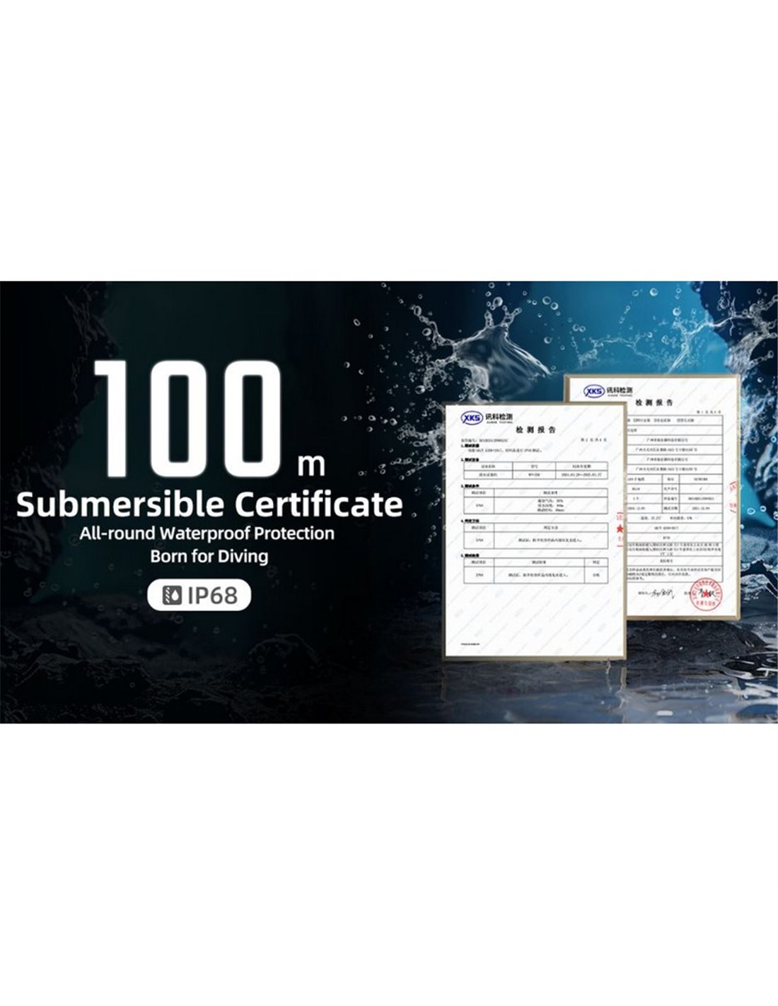 - Widerstand: Wasserdicht bis zu 100 Meter (IP68) und stoßfest bis zu 1 Meter