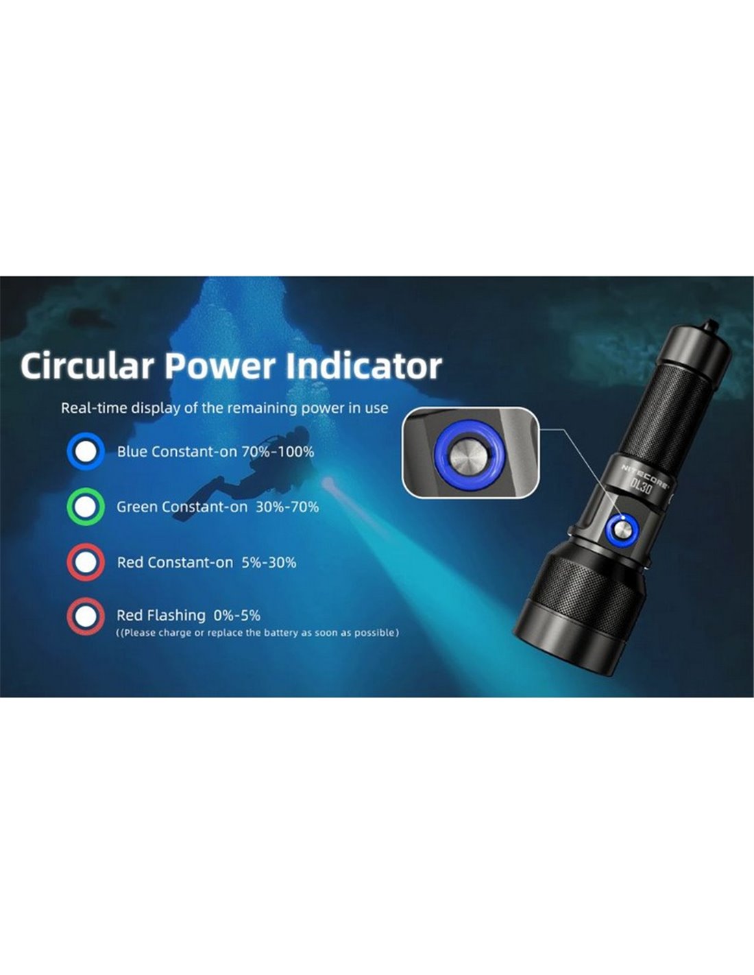 Die Händelampe DL30 von NITECORE wurde für die extremsten Bedingungen entwickelt, wasserdicht bis zu 100 Meter und mit einer Reichweite von 788 Metern. Mit einer maximalen Leistung von 1.100 Lumen ist sie das perfekte Werkzeug für Tauchen, Camping und Outdoor-Aktivitäten.