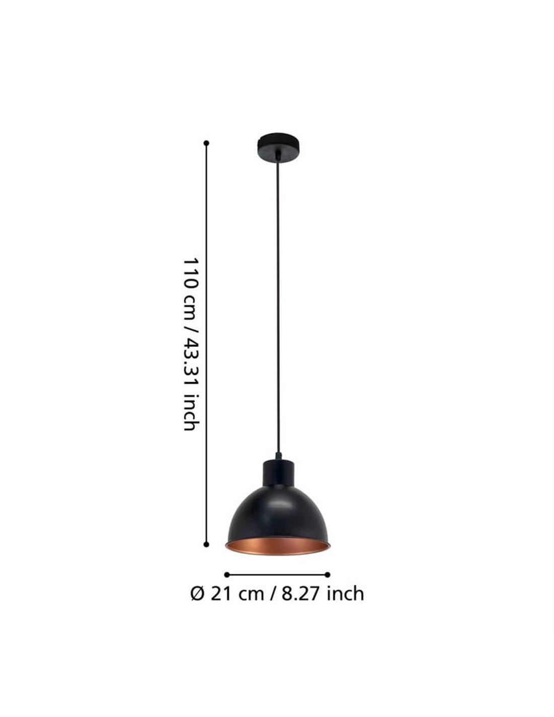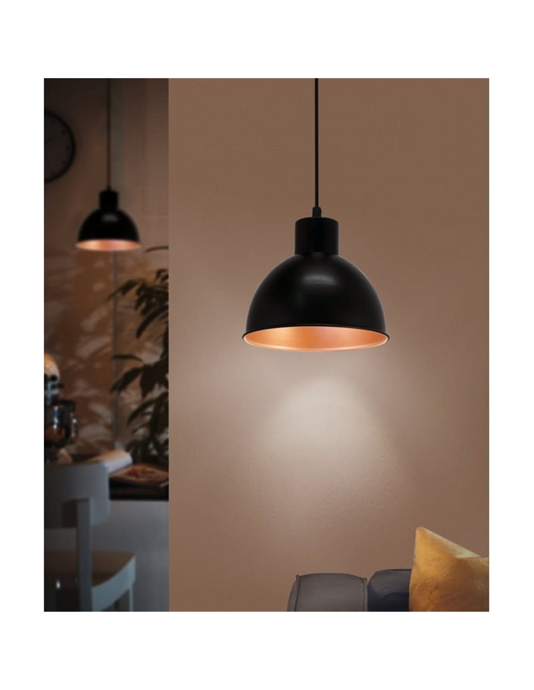 Hängeleuchte aus schwarzem Stahl mit Kupfer-Innenraum TRURO 1 Ø21cm. Verleiht jedem Raum einen industriellen Akzent mit dieser Hängeleuchte von EGLO, ideal zur Beleuchtung Ihres Zuhauses oder Geschäfts mit Stil.