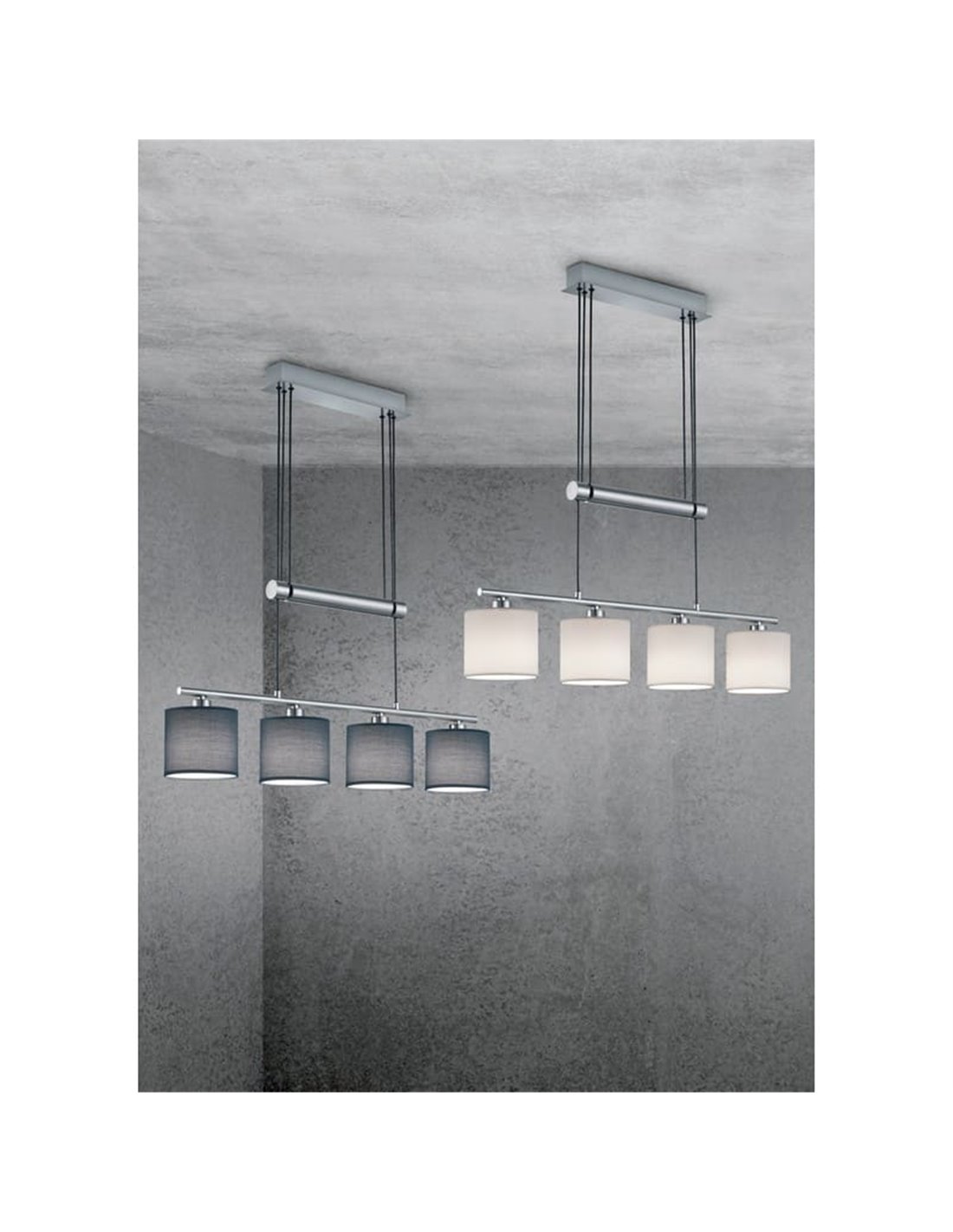 Hängelampe GARDA: Eleganz und Moderne mit 4 Stoffschirmen