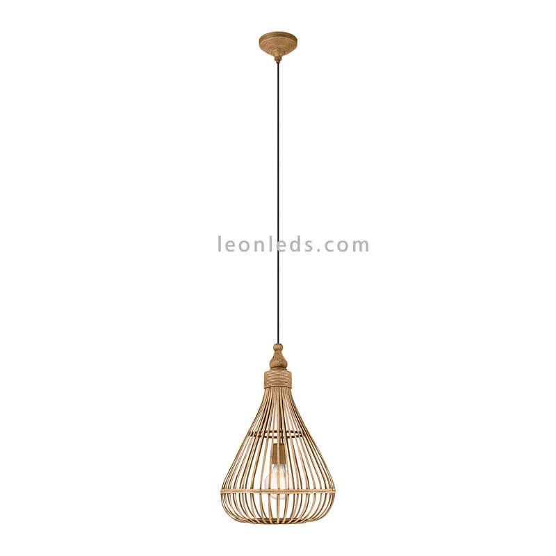 Diese Deckenlampe aus Holz kann in jedem Raum platziert werden dank der geringeren Maße ihres Schirms von 35 cm Durchmesser und 110 cm Höhe, wobei sie ein sehr leichtes Gewicht von nur 1,10 kg hat. Somit ist sie eine großartige Option, um Nachttische zu dekorieren und als Nachttischlampe für deine Lese- oder Entspannungszeiten zu agieren.
