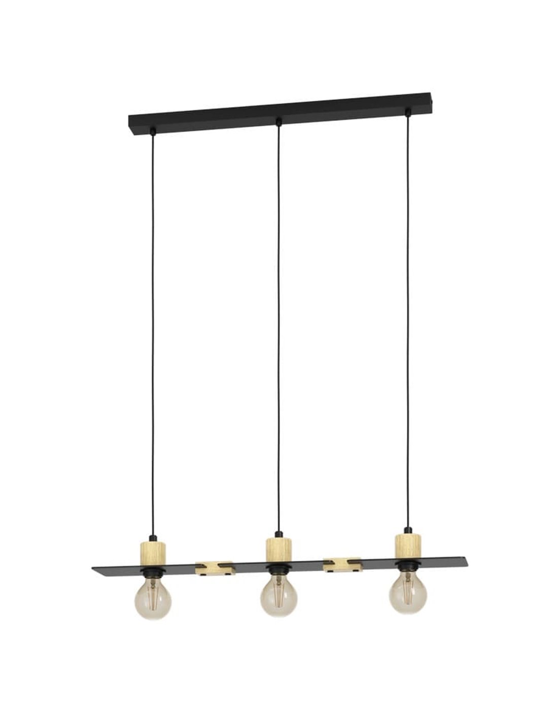 Hängelampe BRAMERTON mit 3 Lichtern in Schwarz und Holzdetails E27