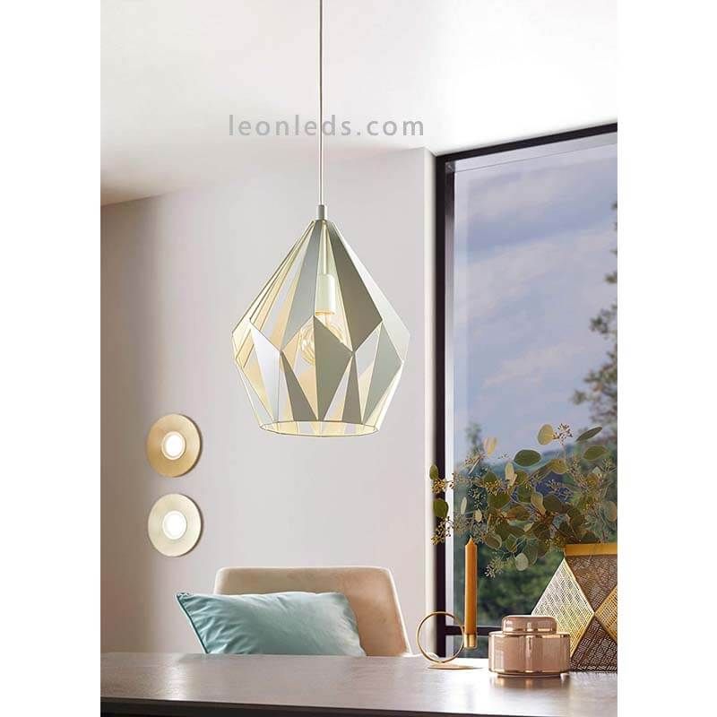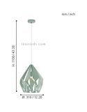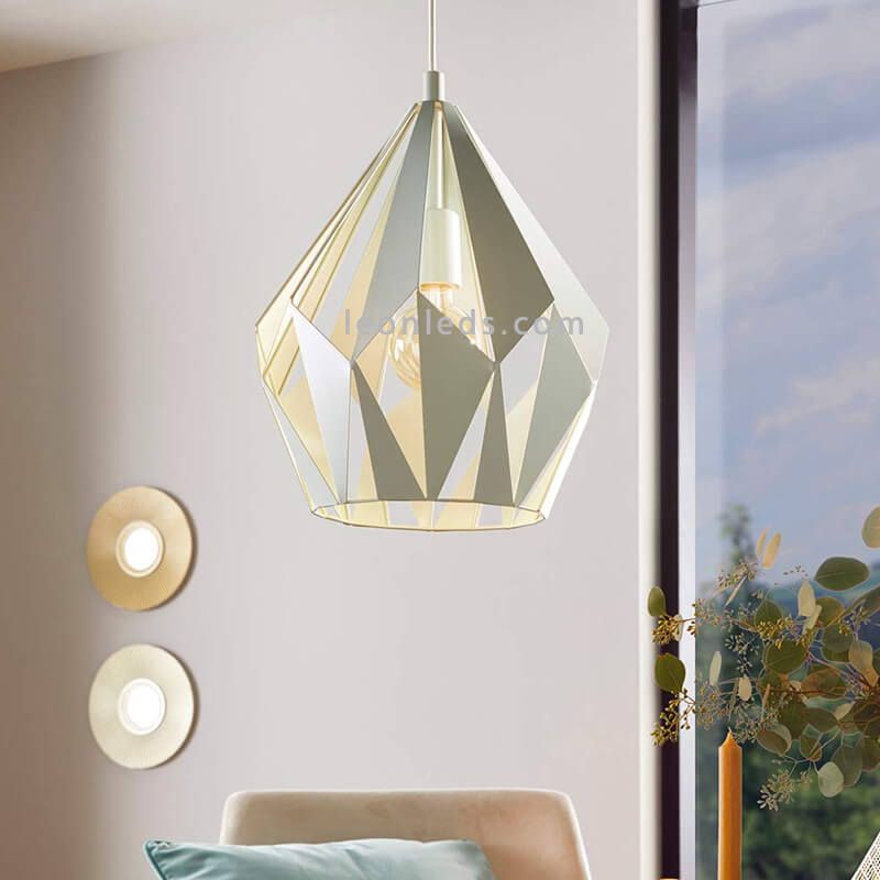 Vintage-Deckenlampe in mintgrün aus Stahl aus der Kollektion Carlton 1 des Herstellers Eglo Beleuchtung. Eine sehr elegante Vintage-Lampe, die Ihre Räume mit Stil und Glamour erfüllt. Ihr abstrakter Schirm besteht aus unregelmäßigen Dreiecken, die eine Glühbirne mit E27-Fassung (nicht enthalten) sichtbar machen. Wir empfehlen die Verwendung einer LED-Glühlampe im Globo-Format, um ihren Vintage- und Retro-Stil zu betonen, vorzugsweise in einem warmen Ton wie 3.000k, der den gewünschten Vintage- oder Industrieeffekt verstärkt. Die empfohlene Leistung liegt zwischen 10 und 17W, abhängig von den Abmessungen des Raumes, den wir beleuchten möchten.