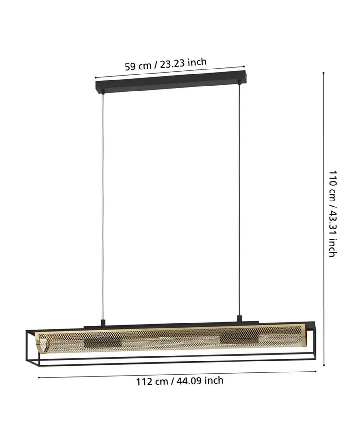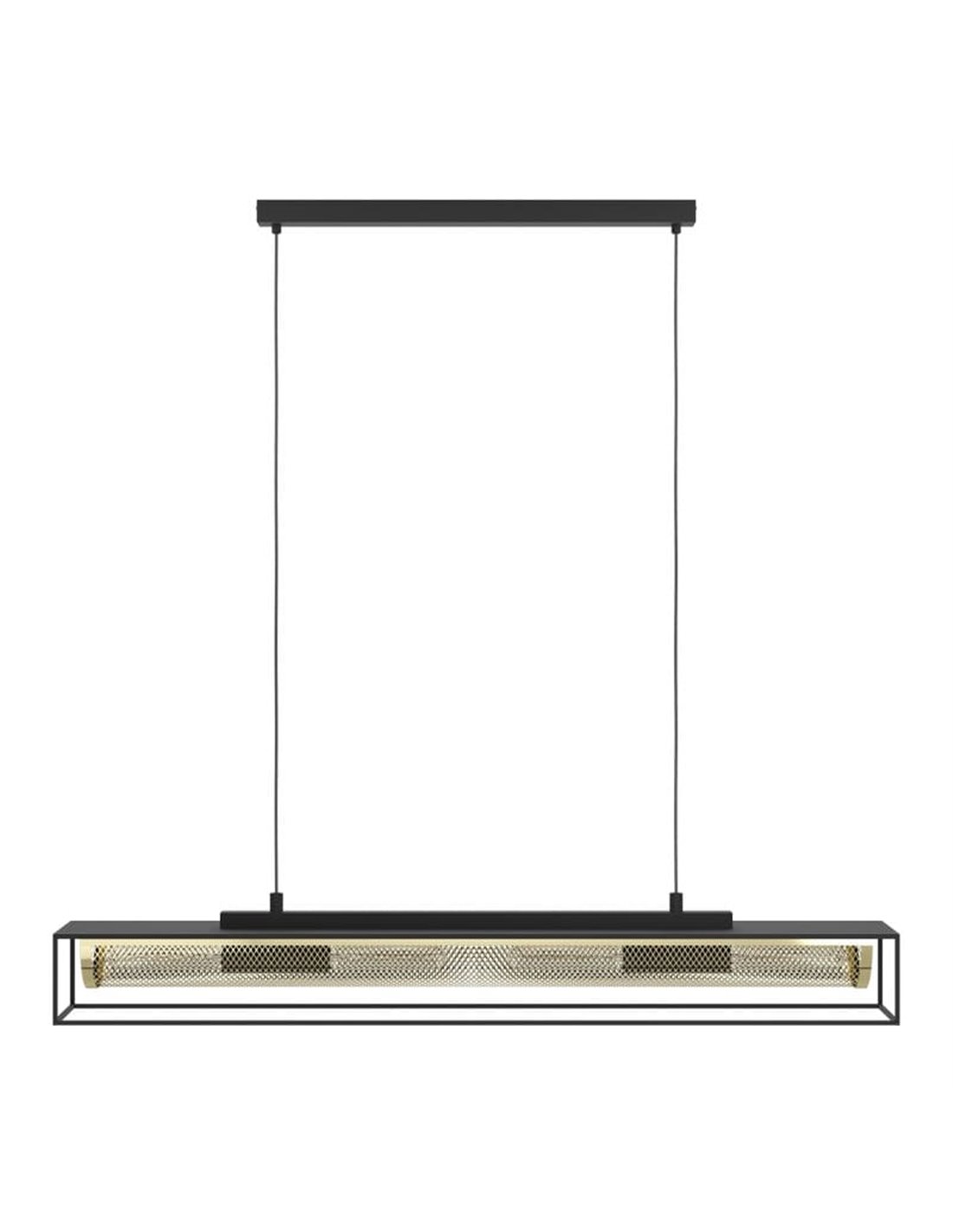 Die hängende NOHALES-Lampe von Eglo präsentiert einen langen schwarzen Metallrahmen, der die vier internen Glühbirnen zeigt, und schafft faszinierende Licht- und Schattenspiele. Hängend an schwarzen Kabeln, verleiht diese Lampe einen industriellen und dekorativen Akzent, ideal um große Esstische und weitläufige Wohnzimmer zu beleuchten. Kompatibel mit E27-Glühbirnen (nicht enthalten), ermöglicht sie die Anpassung der Beleuchtung entsprechend der gewünschten Atmosphäre.