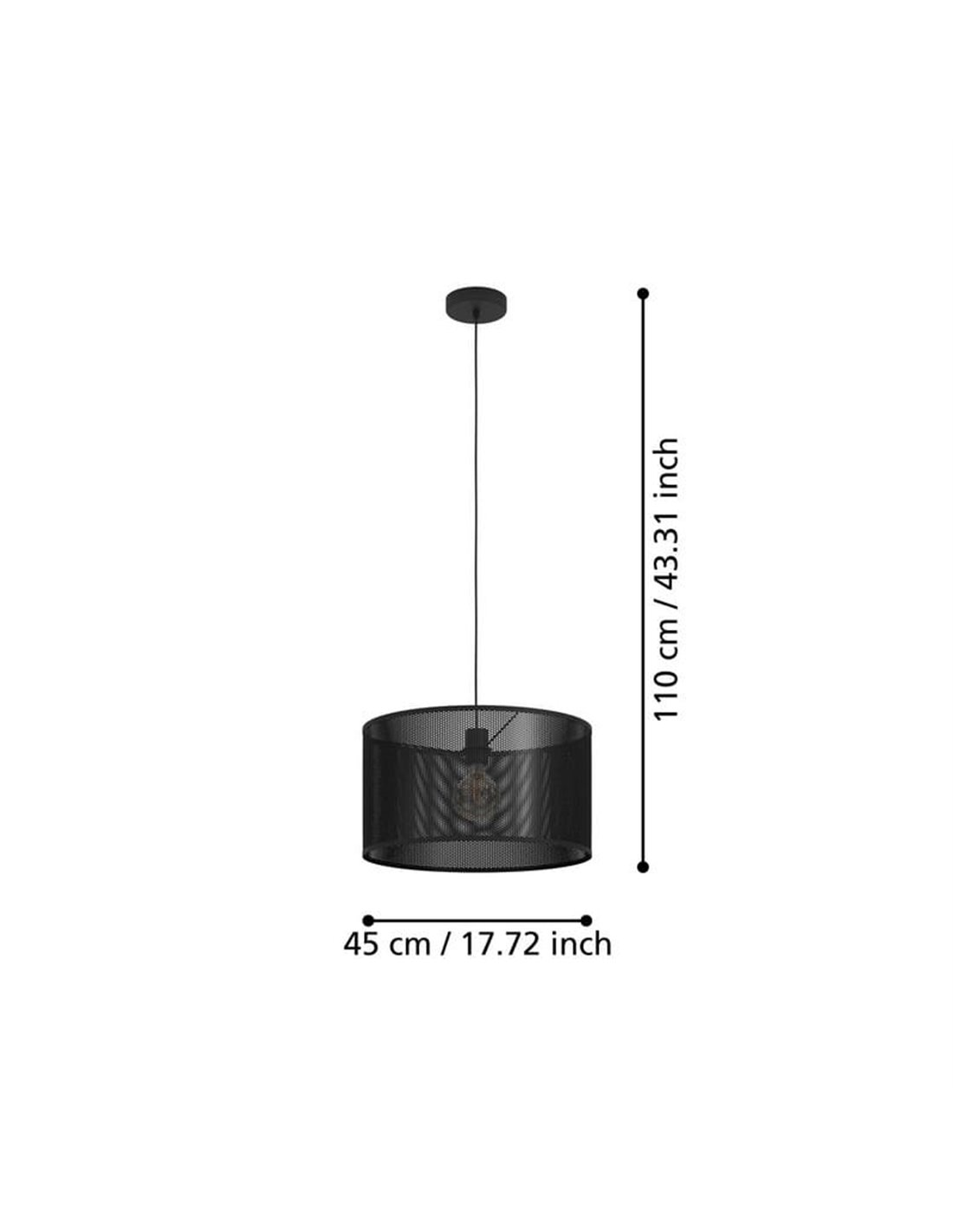Die Hängelampe MANBY von Eglo zeichnet sich durch ihr industrielles Design mit einem runden, erweiterten schwarzen Metallschirm aus. Hängend mit einem schwarzen Textilkabel, erzeugt diese Lampe faszinierende Licht- und Schattenspiele durch das Gitter, wenn sie eingeschaltet ist, und verleiht jedem Raum einen dekorativen und modernen Akzent. Ideal zur Beleuchtung von Wohnzimmern, Esszimmern und Schlafzimmern, ist diese Lampe kompatibel mit E27-Glühbirnen (nicht enthalten), die ihren industriellen Stil zur Geltung bringen.
