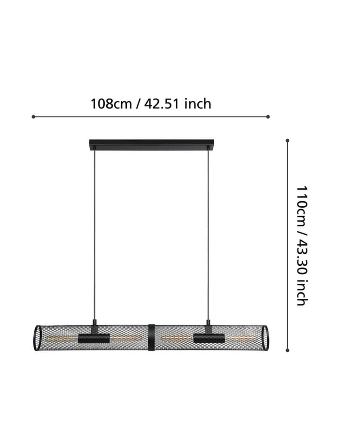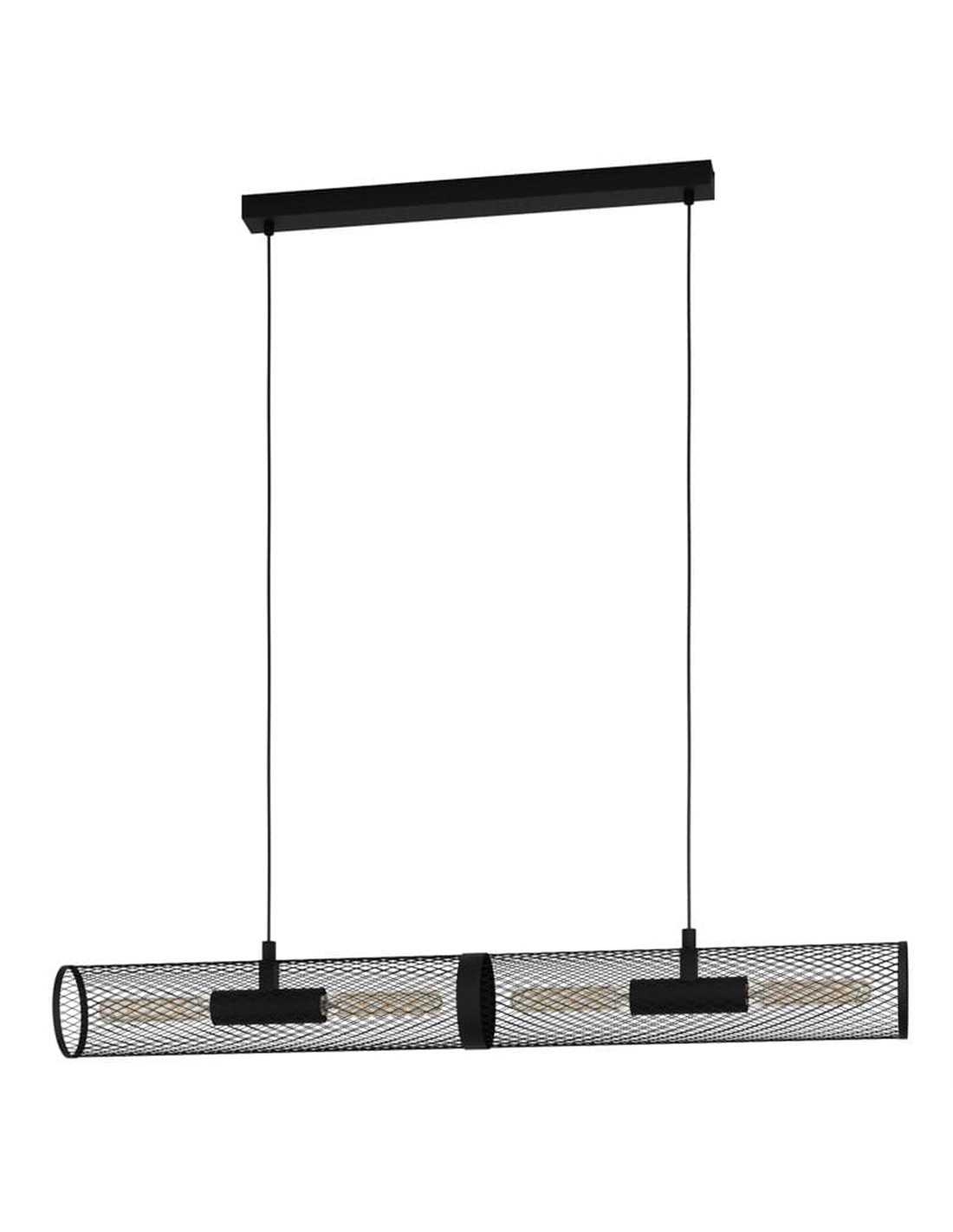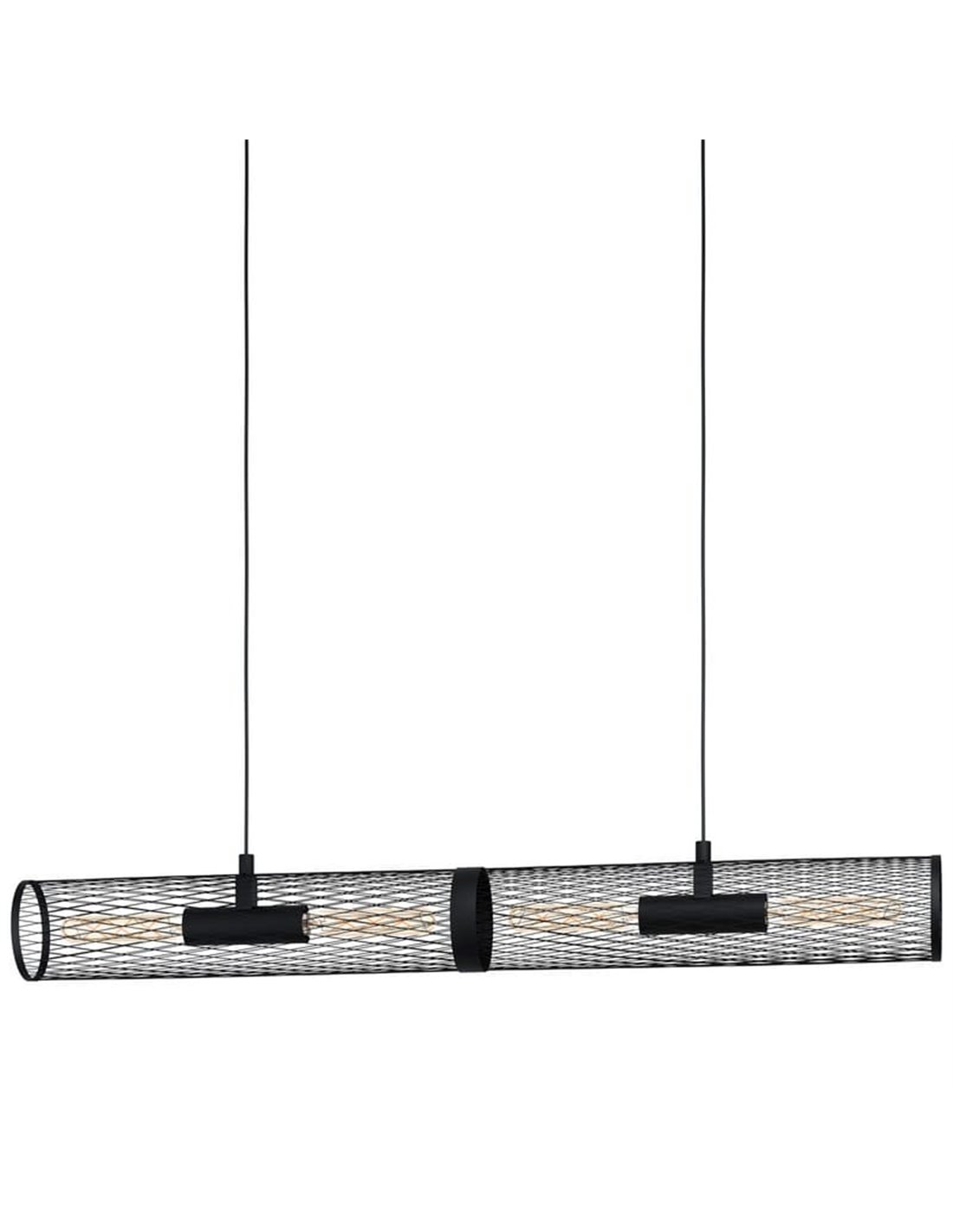Hängelampe REDCLIFFE von Eglo, mit einem langen Zylinder aus schwarz expandiertem Metall. Kompatibel mit langen E27-Glühbirnen (nicht enthalten). Perfekt, um Wohnzimmer und Esszimmer einen dekorativen industriedesign Akzent zu verleihen.